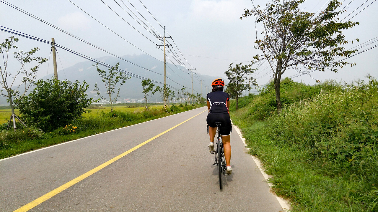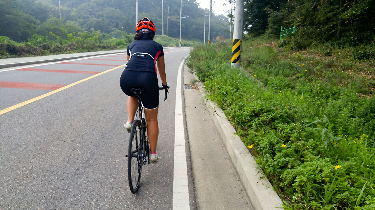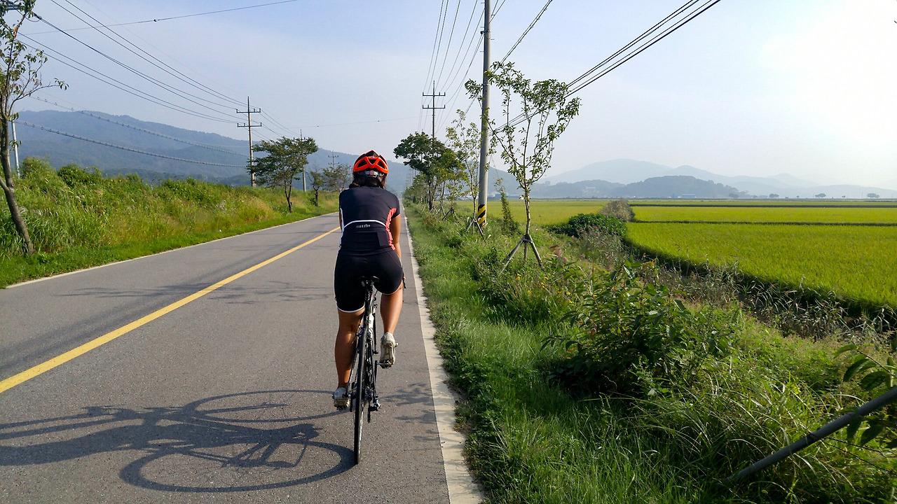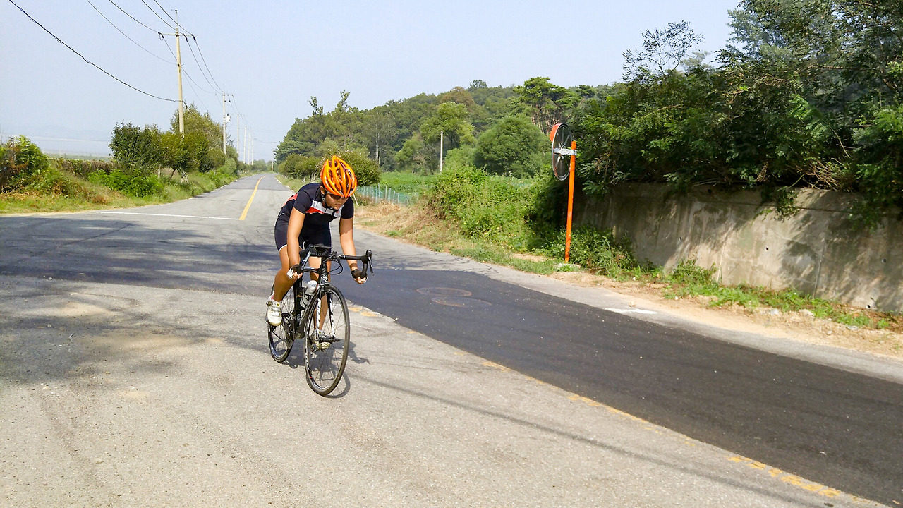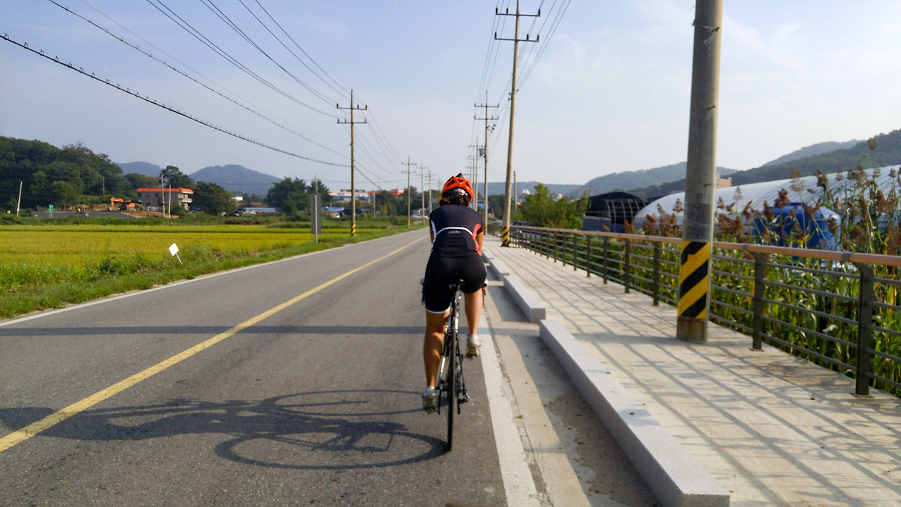 보문사 입구에서 조금 가다 보면 자전거길이 나타난다. 양방향 자전거길이 한쪽에만 있으니 반시계 방향으로 달린 것이다.