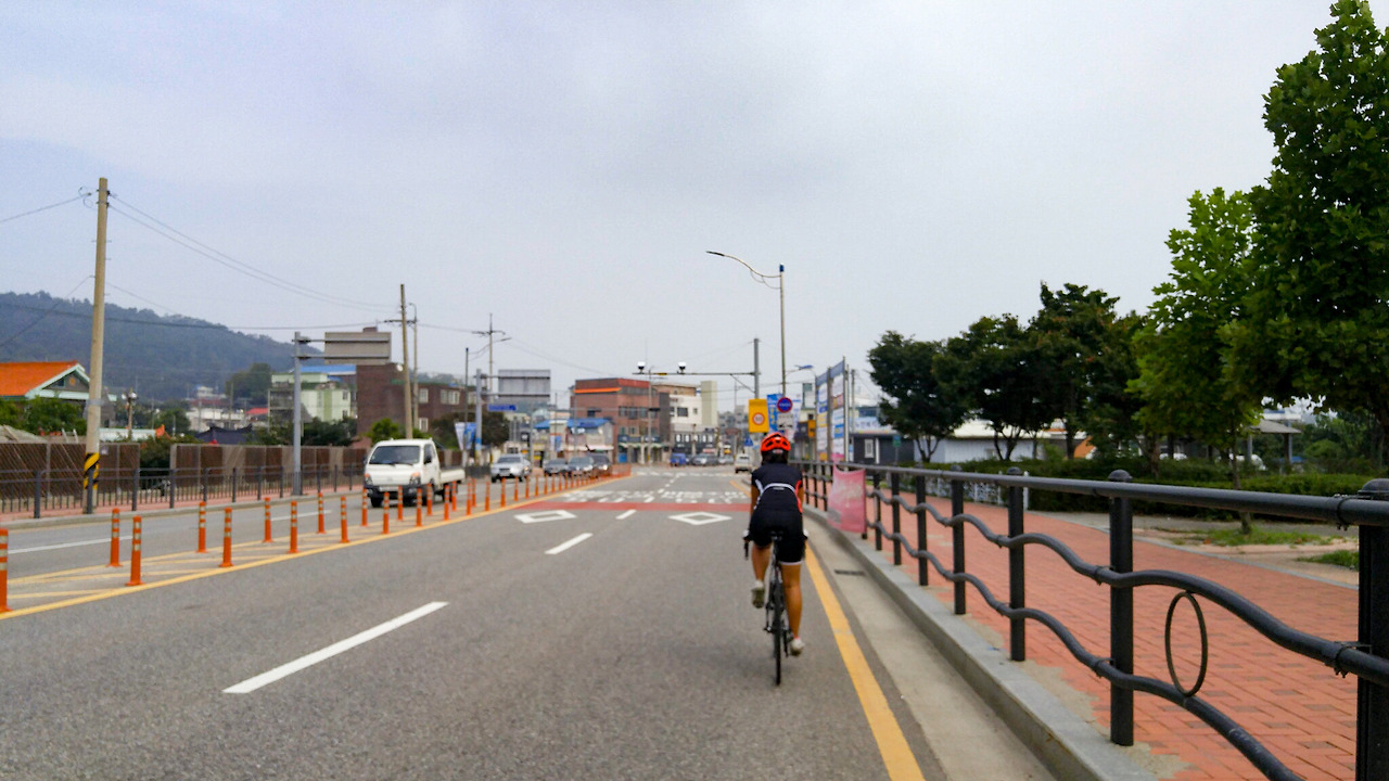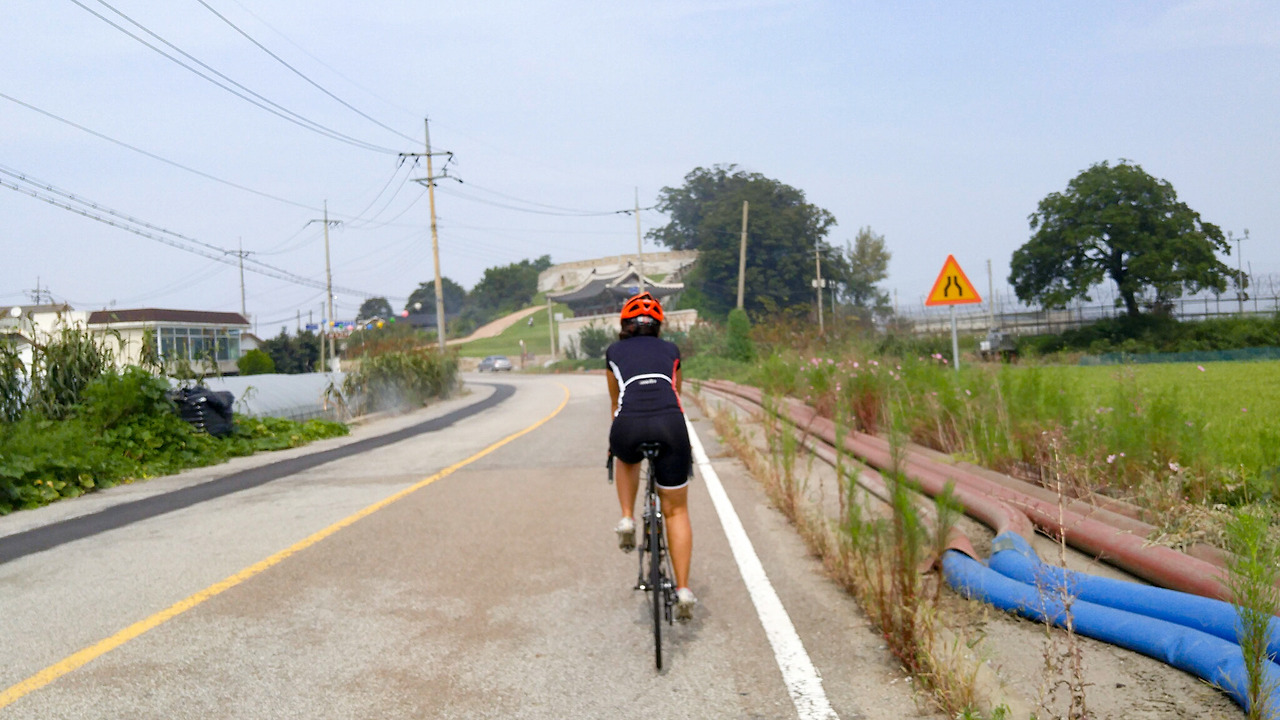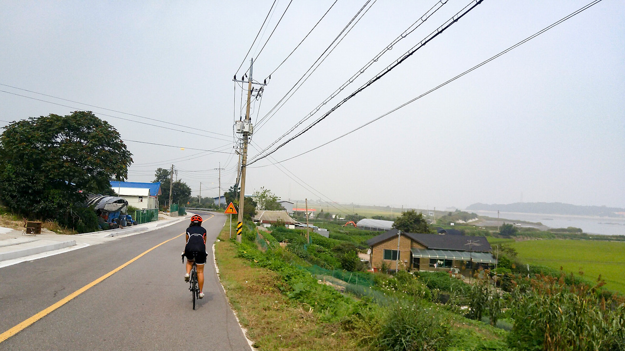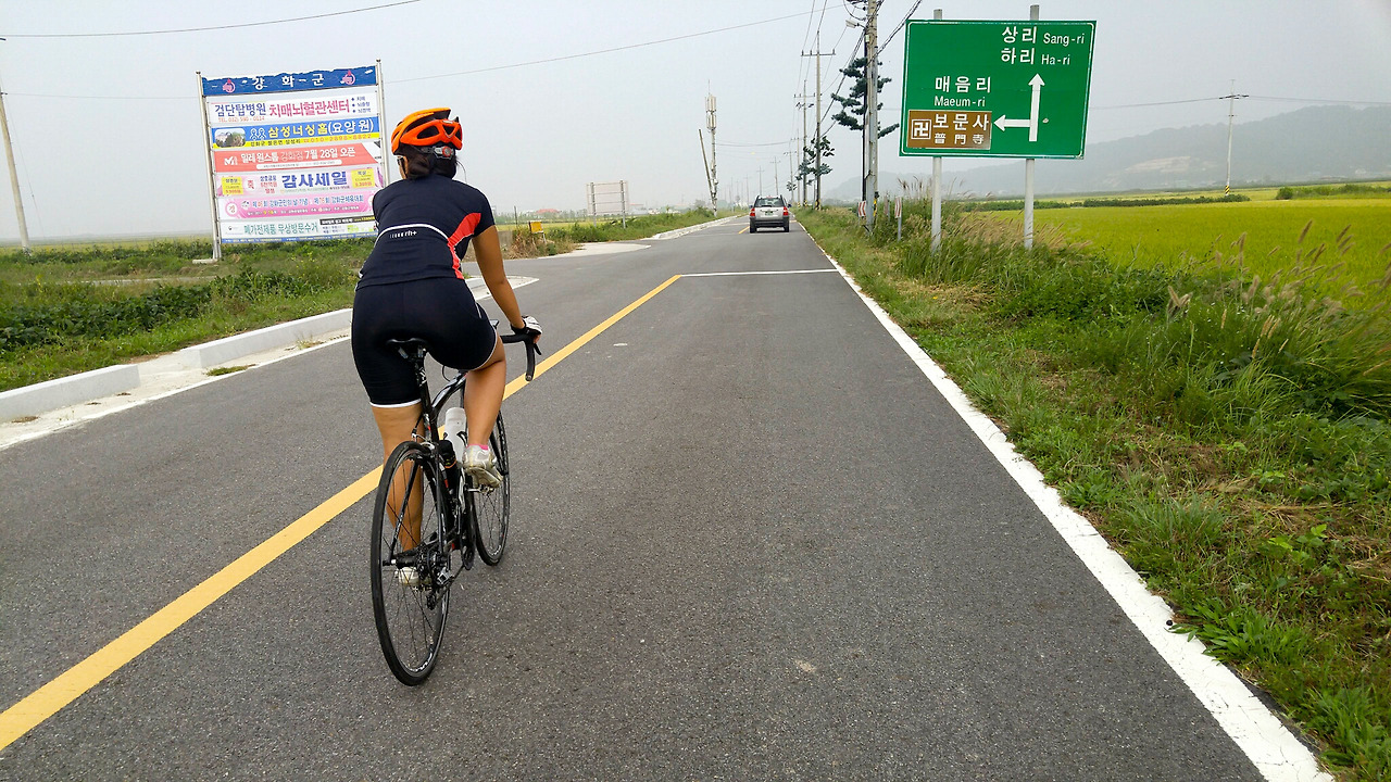 강화읍내는 항상 혼잡하다. 강화군청을 지나서 작은 길로 빠지니 비로소 조용하고 한적해진다. 차도 옆에 자전거도로라고 만들어놓고선 뭔가 튜브 같은 것들을 잔뜩 깔아놔서 자전거 도로로 다닐 수가 없다.