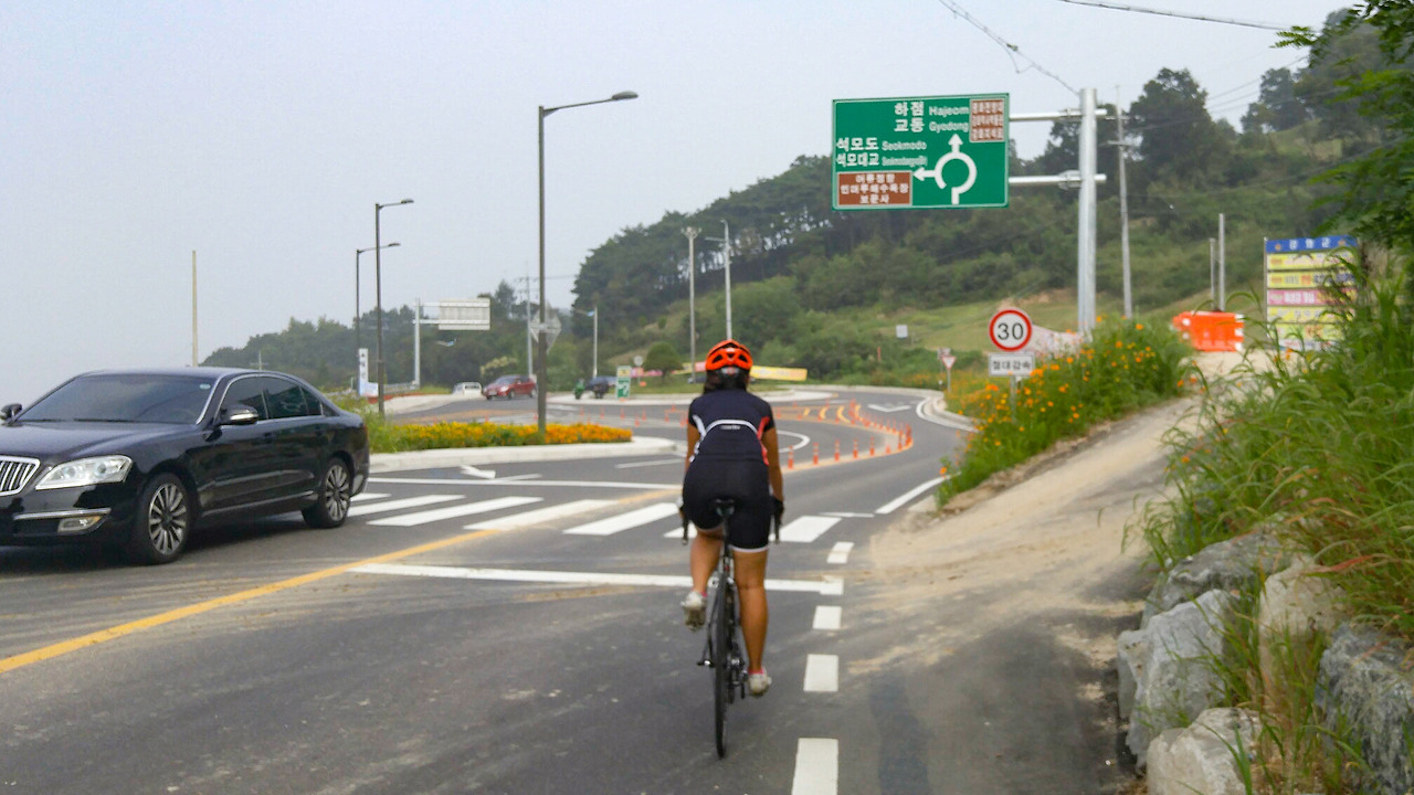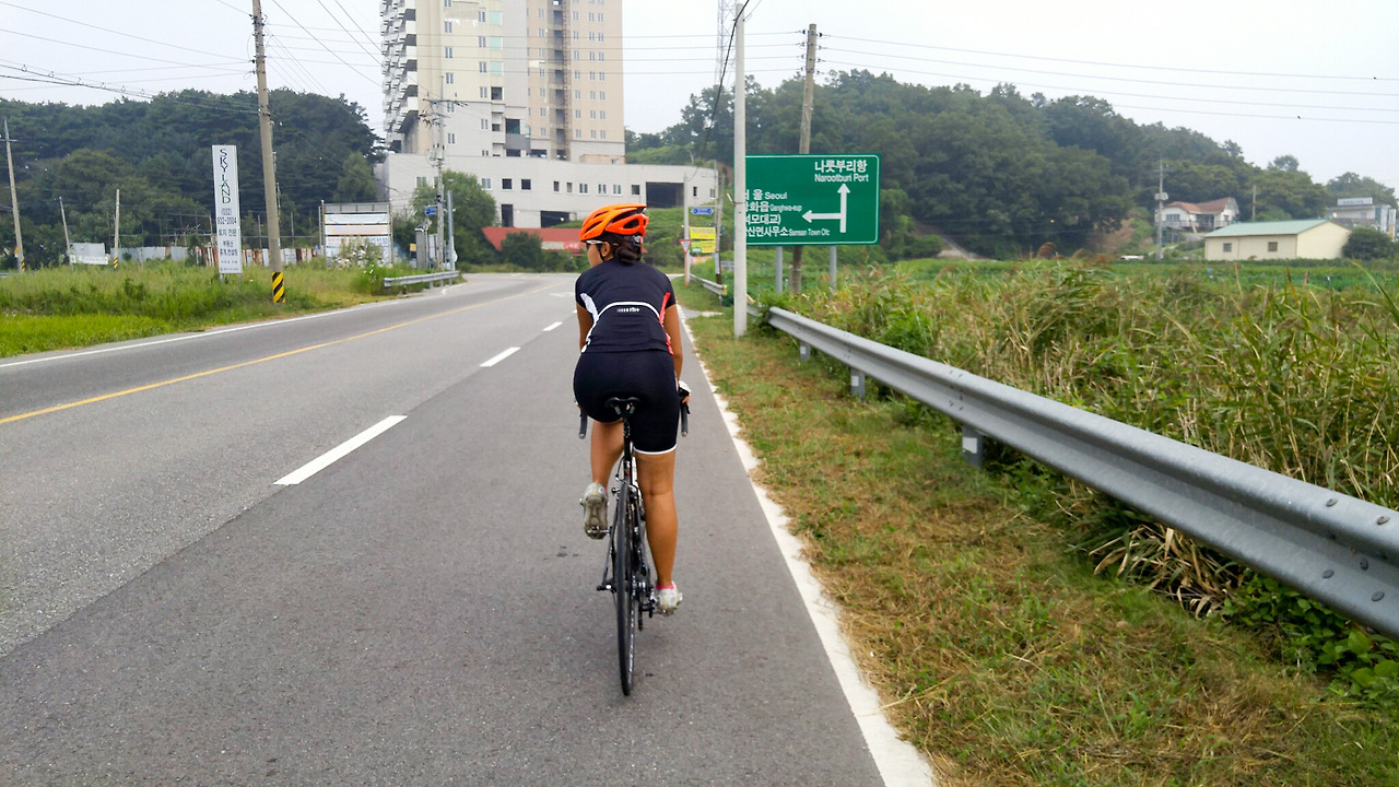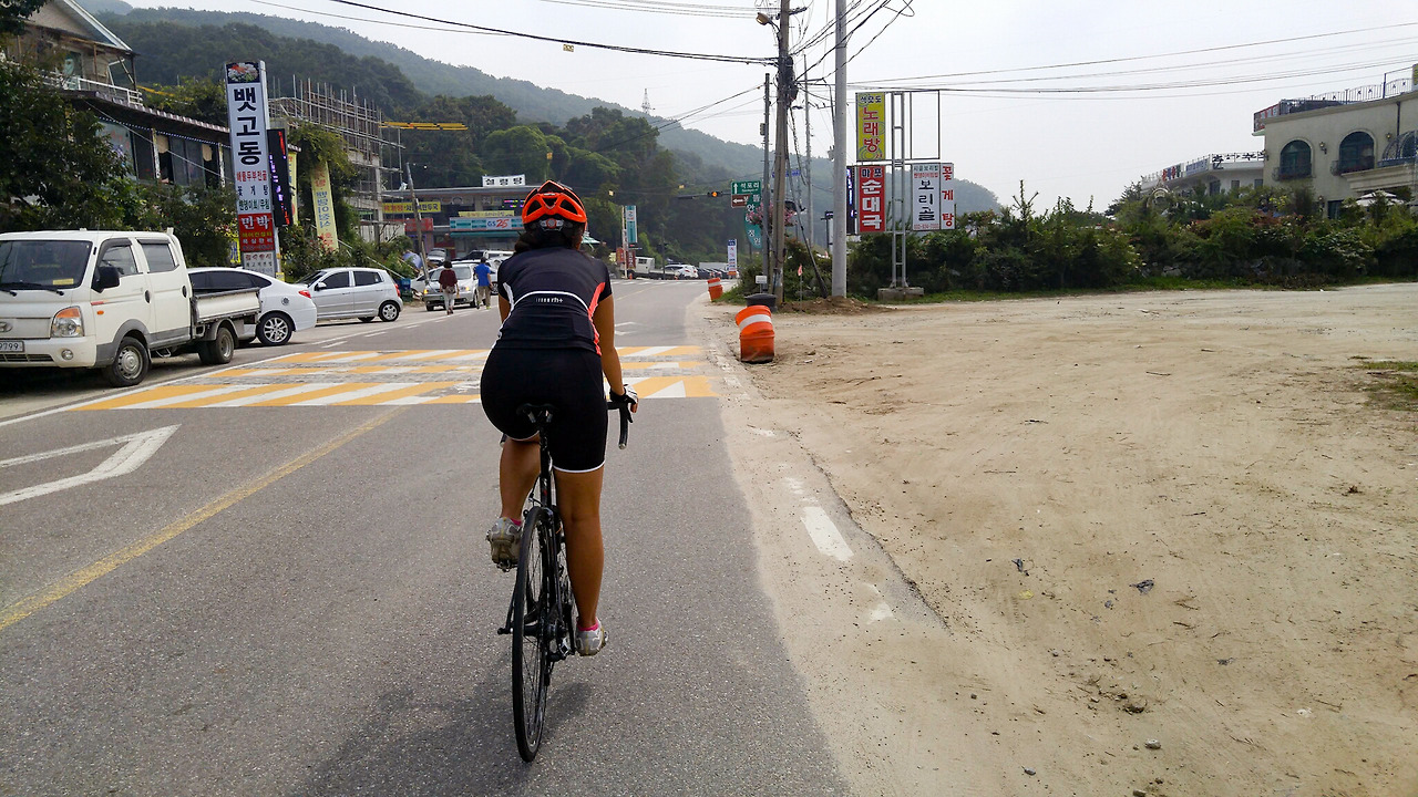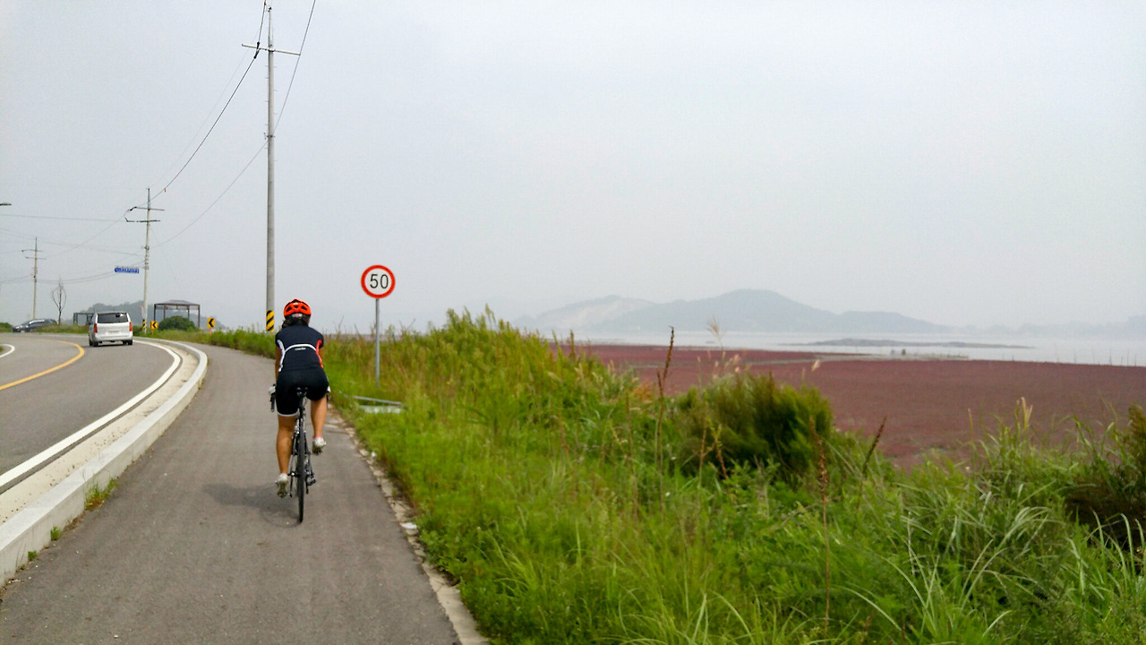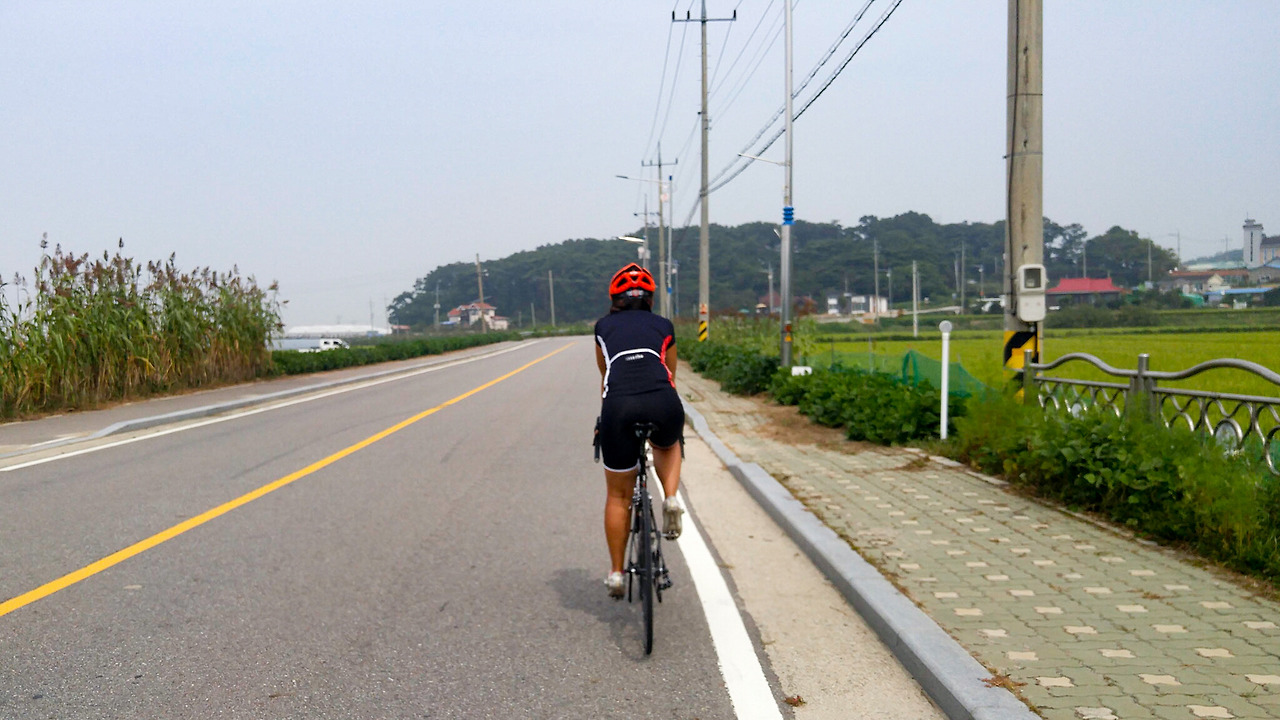 강화읍내는 항상 혼잡하다. 강화군청을 지나서 작은 길로 빠지니 비로소 조용하고 한적해진다. 차도 옆에 자전거도로라고 만들어놓고선 뭔가 튜브 같은 것들을 잔뜩 깔아놔서 자전거 도로로 다닐 수가 없다.