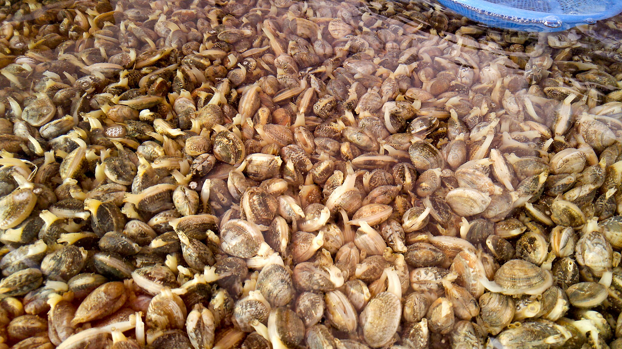 강화도에 오면 항상 가서 먹는 집이 있다. 식당 입구의 커다란 어항에서 바지락들이 한참 해감 중이다.