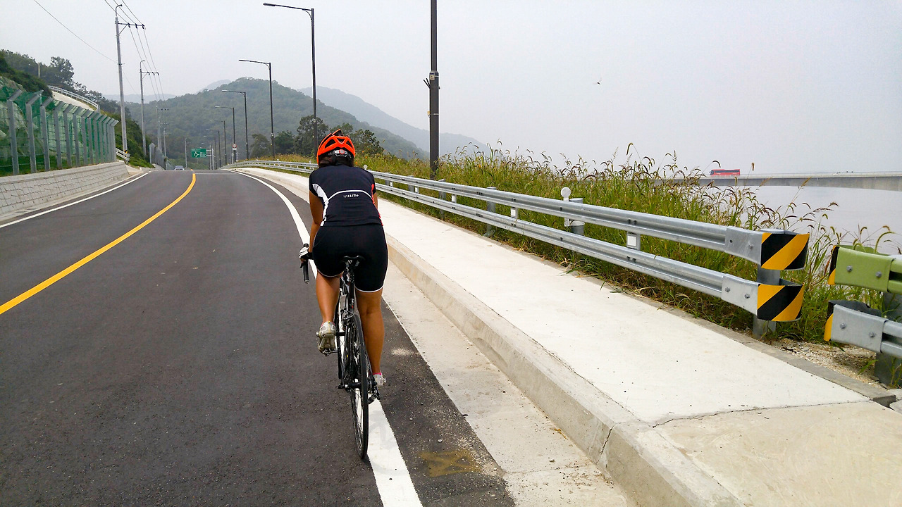 이제 석모대교를 다시 건너서 빠져나온다. 보통 연육교나 연도교 같은 큰 다리들은 수면에서 상당히 높이 건설되니 그 양 끝의 입구에 가는 길도 오르막인 경우가 많은데 석모대교의 양쪽 입구는 그리 힘든 오르막은 아니다.