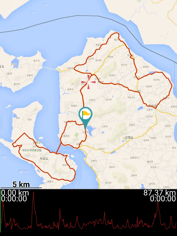 강화도는 우리나라에서 4번째로 큰 섬이라고 한다. 섬이 큰 만큼 석모도와 함께 일부분만 돌아도 90km 가까이 나온다.