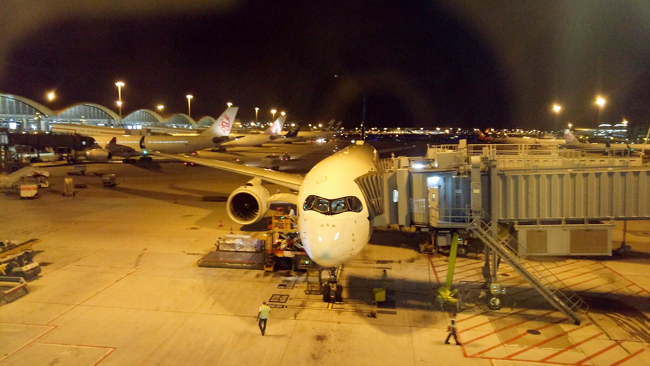 이제 바르셀로나로 가는 비행기를 타야 한다. 신형 비행기라 할 수 있는 A350-900 기종이다. 매끈하게 빠진 형상과 깔끔한 실내에 최신식 시설을 갖추고 있다. 비행시간 내내 시달려야 하는 엔진 소음도 적은 편이라 나름대로 편하다.