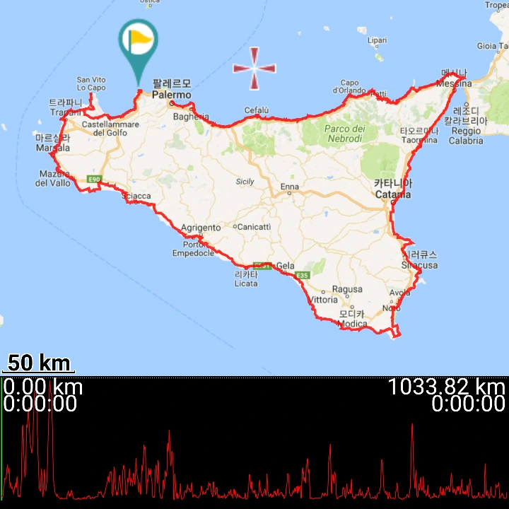 2017년 5월에는 지중해의 가장 큰 섬인 시칠리아를 자전거로 한 바퀴 돌고 왔다. 시칠리아섬 둘레 1000km를 돌면서 시시각각 변하는 지중해 바다색과 풍경을 만끽하였다.