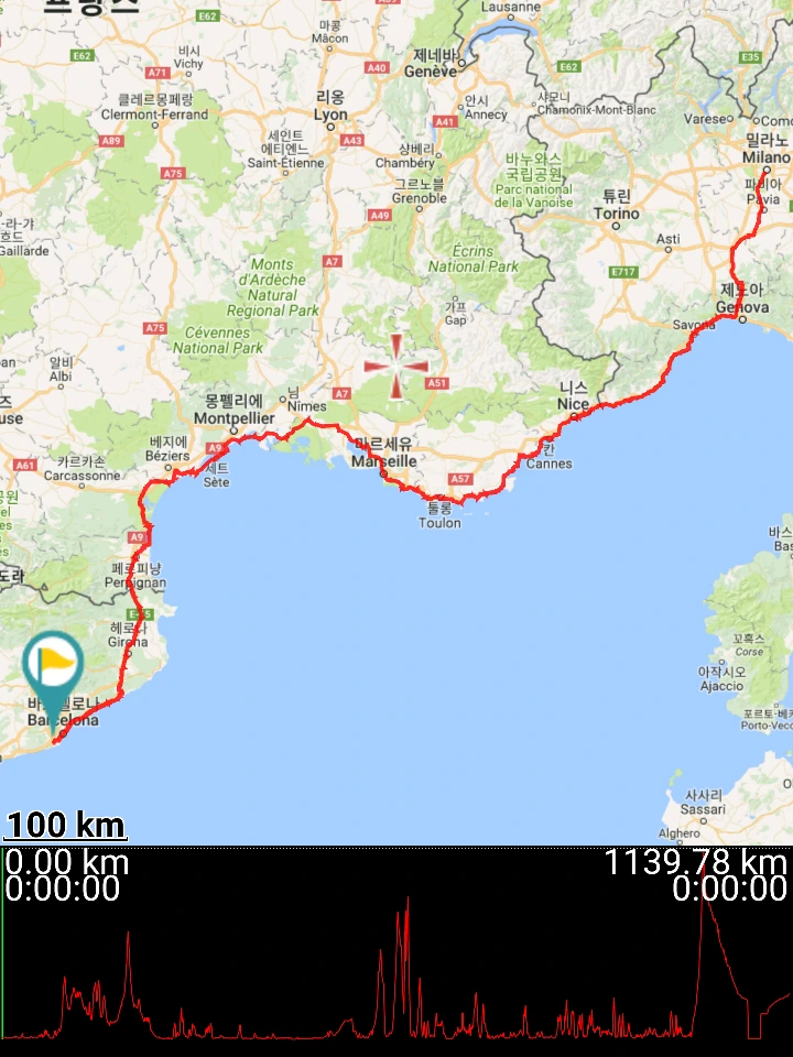 이제 자고 일어나면 바르셀로나에는 아침 7시에 도착한다. 비행기에서 내리자마자 지중해 자전거 여행이 바로시작된다.