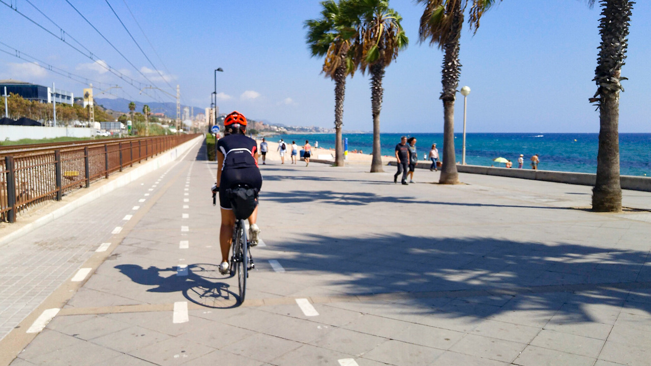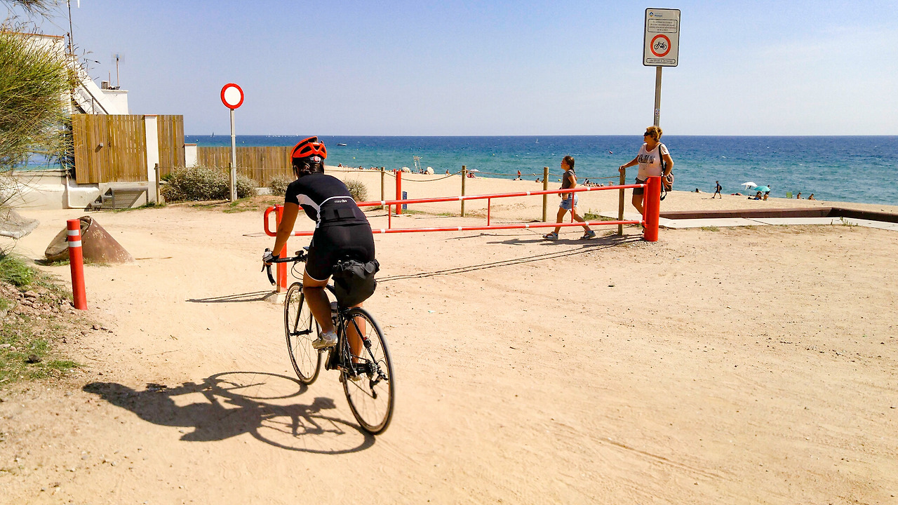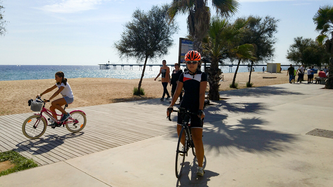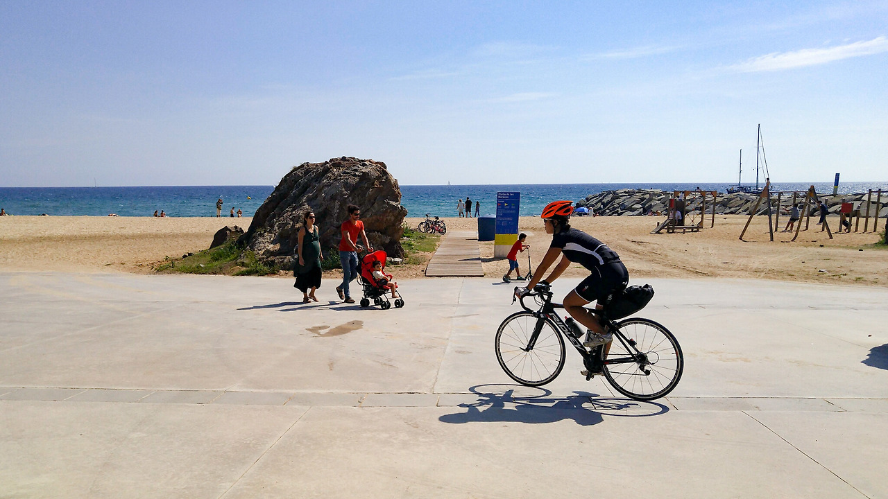 요트 항구와 음식점 뒤로 바르셀로나 해변의 백사장이 펼쳐진다. 점심을 든든히 먹었으니 다시 출발이다. 지금부터 해안 도로를 따라 달려서 바르셀로나를 벗어난다.