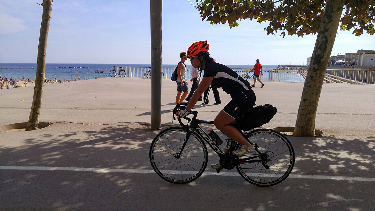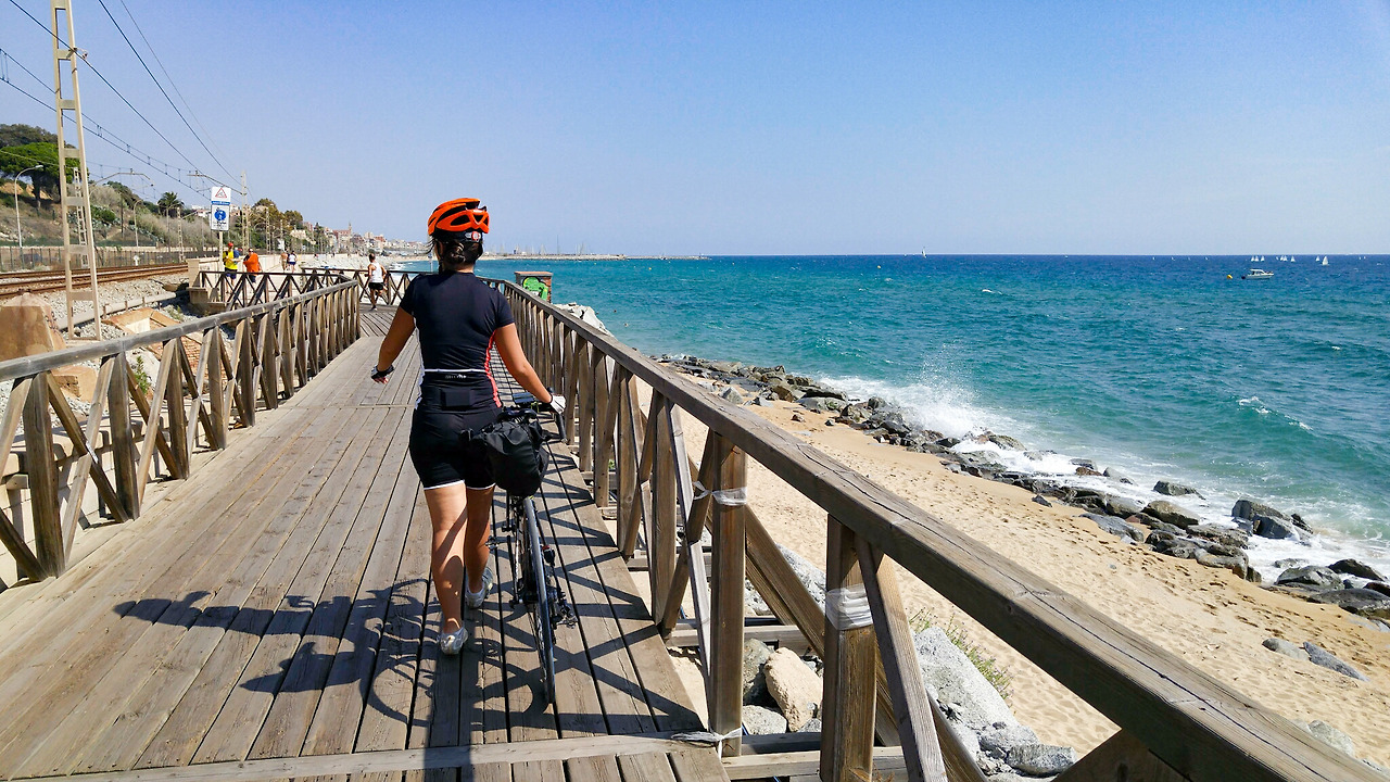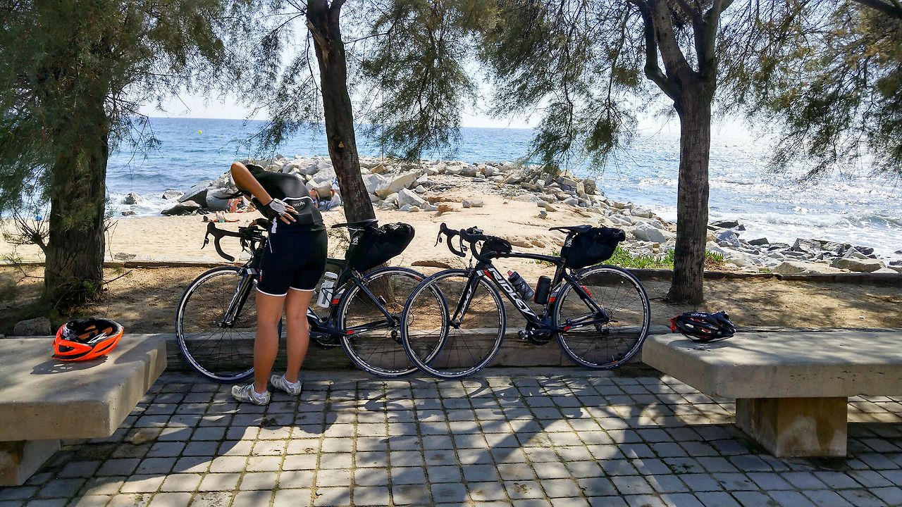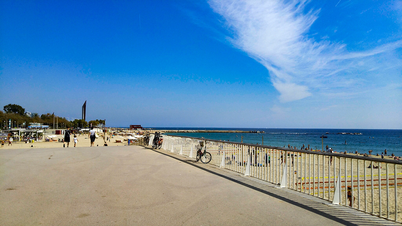 요트 항구와 음식점 뒤로 바르셀로나 해변의 백사장이 펼쳐진다. 점심을 든든히 먹었으니 다시 출발이다. 지금부터 해안 도로를 따라 달려서 바르셀로나를 벗어난다.