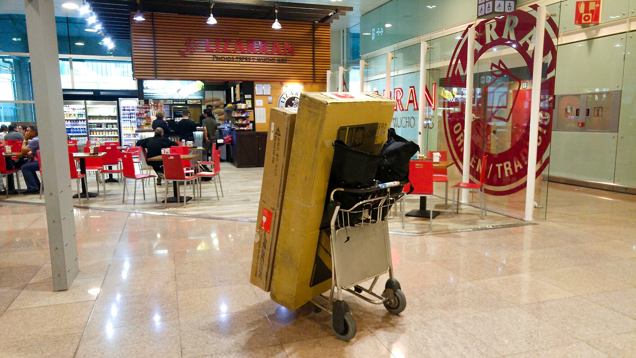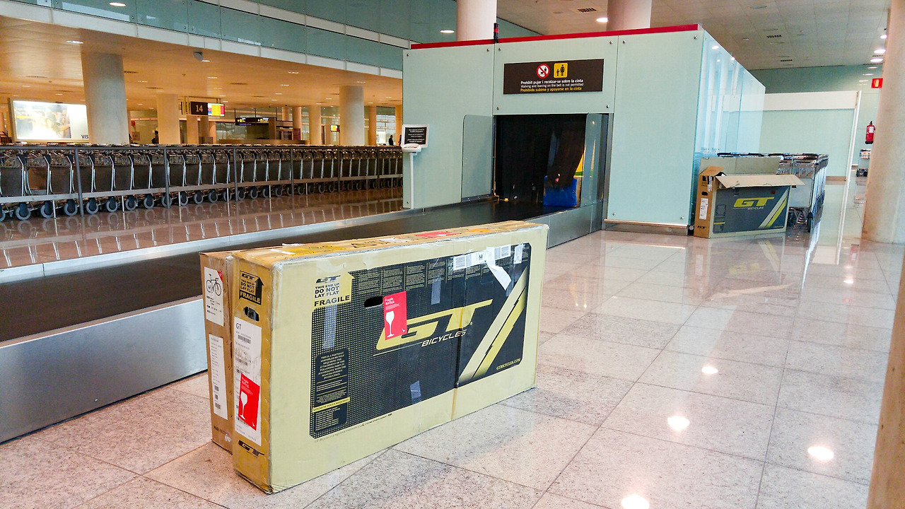 바르셀로나 공항에 온 것이 처음은 아니기에 큰 짐을 찾는 것에 익숙하다. 수하물 찾는 곳 양쪽 끝에 큰 짐 나오는 곳이 있다. 찾아갔더니 우리 자전거 박스 외에도 다른 자전거 박스들도 있다. 우리 박스가 나오기 전에 저 뒤편의 똑같은 박스가 포장이 열려있어 깜짝 놀랐다.