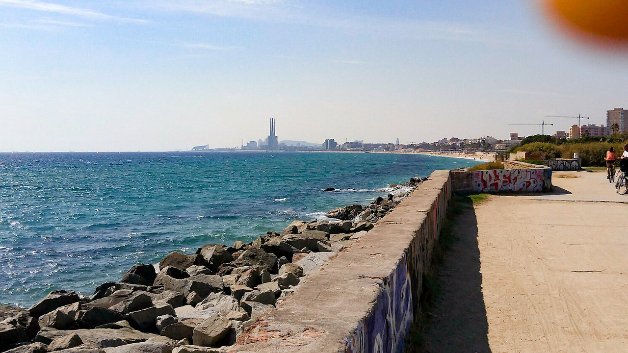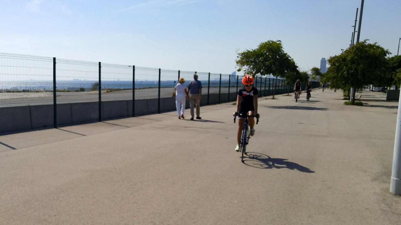 바르셀로나 해변 끝에는 자연사 박물관과 공원들이 있다. 차들은 B-10번 길의 지하차도로 통과해서 해변을 벗어나는데 자전거나 사람은 직진해서 화력발전소 옆으로 빠져나오면 된다. 자전거 타는 사람이 꽤 지나다니기 때문에 자전거들이 오가는 곳을 따라 가면 길 찾기가 어렵지 않다. 여기서부터는 바르셀로나 도심을 벗어난 위성도시인 바달로나이다.