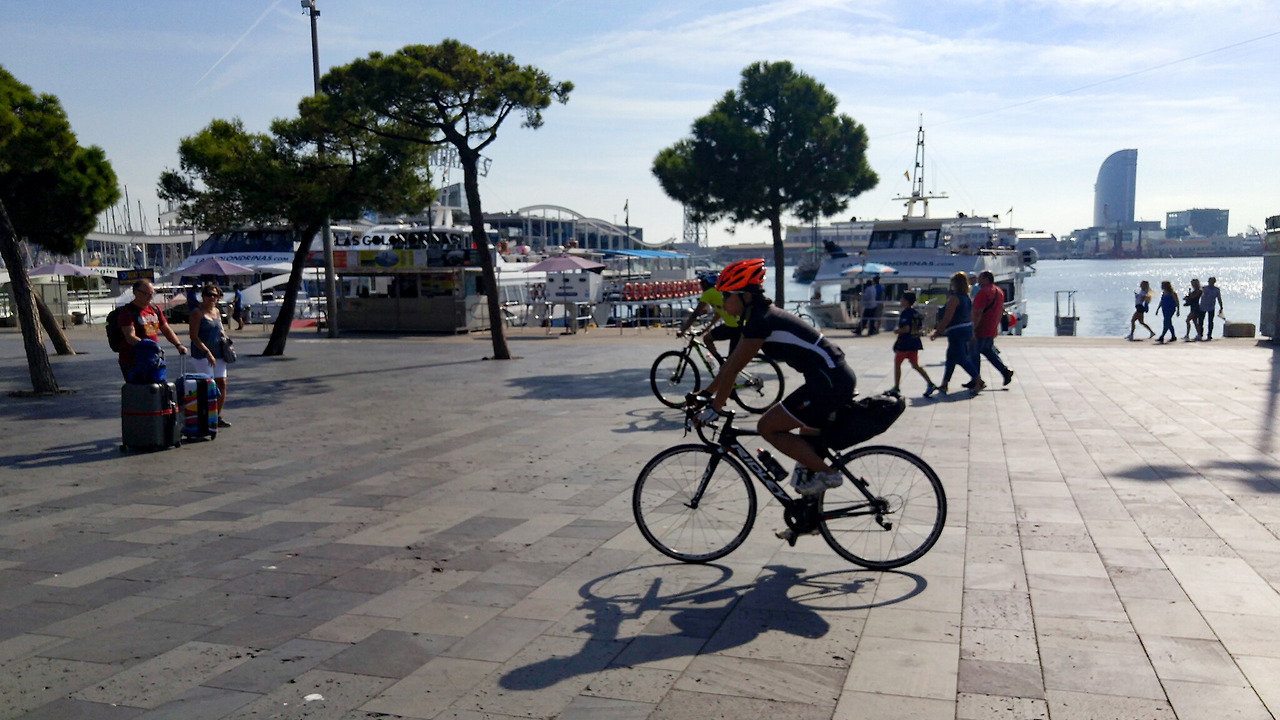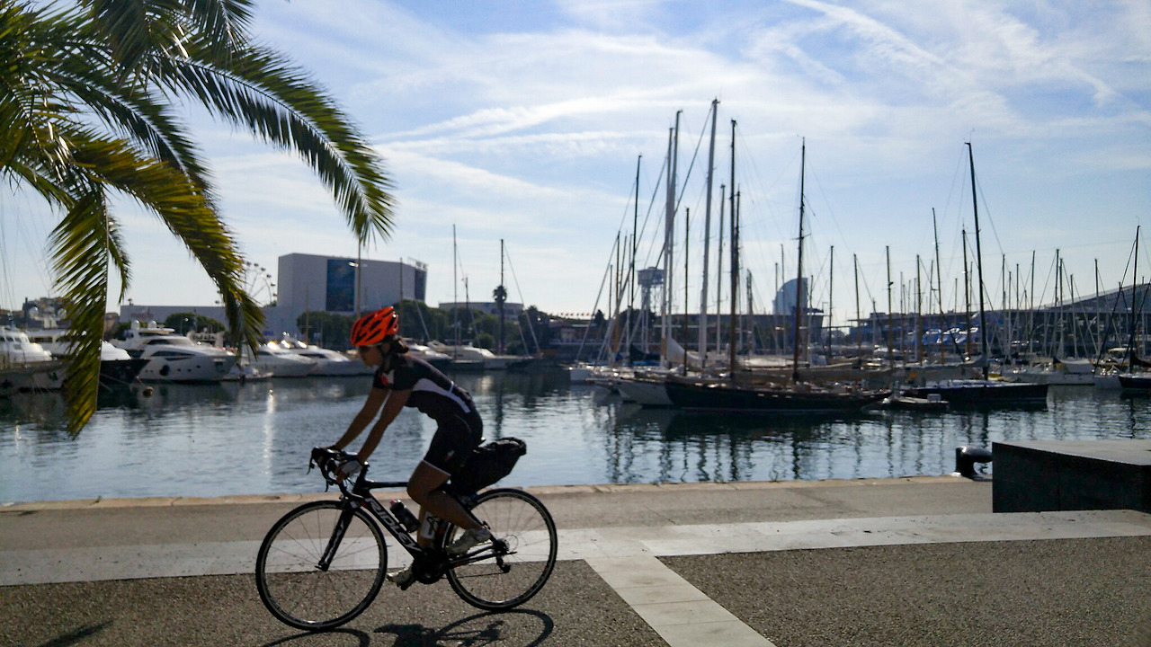 요트들이 세워져 있는 바르셀로나 항구를 지난다. 몬주익 언덕 옆부터 도심 쪽으로 큰 항만 시설, 요트 선착장, 모래사장 순으로 지나가게 된다.