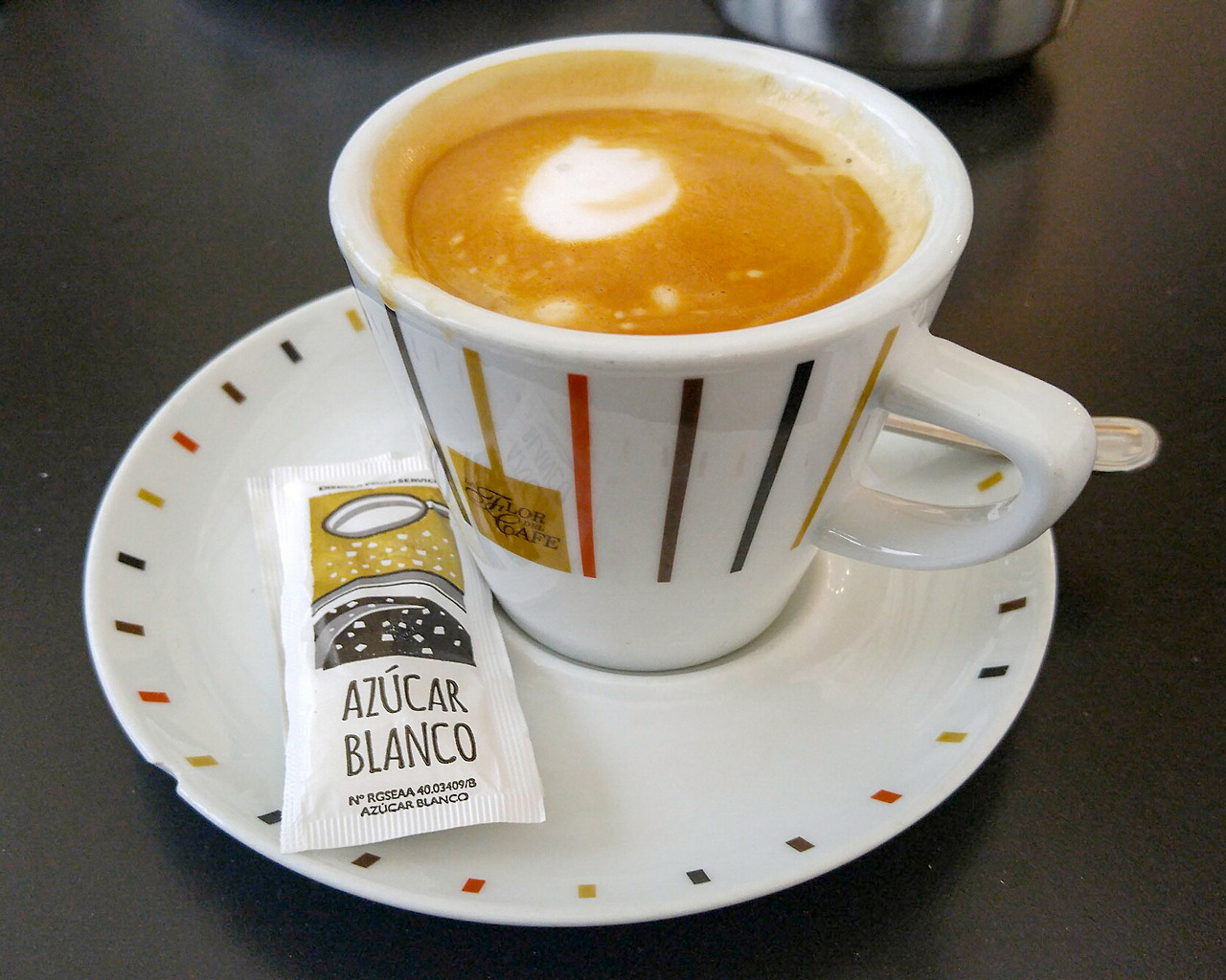 그리고 후식으로 나는 가게에서 직접 만든 푸딩을, 지니님은 코르타도(에스프레소에 우유를 첨가한 커피)를 먹는다. 이렇게 두 접시에 디저트까지 해서 보통 1인당 10~12유로 정도이다.