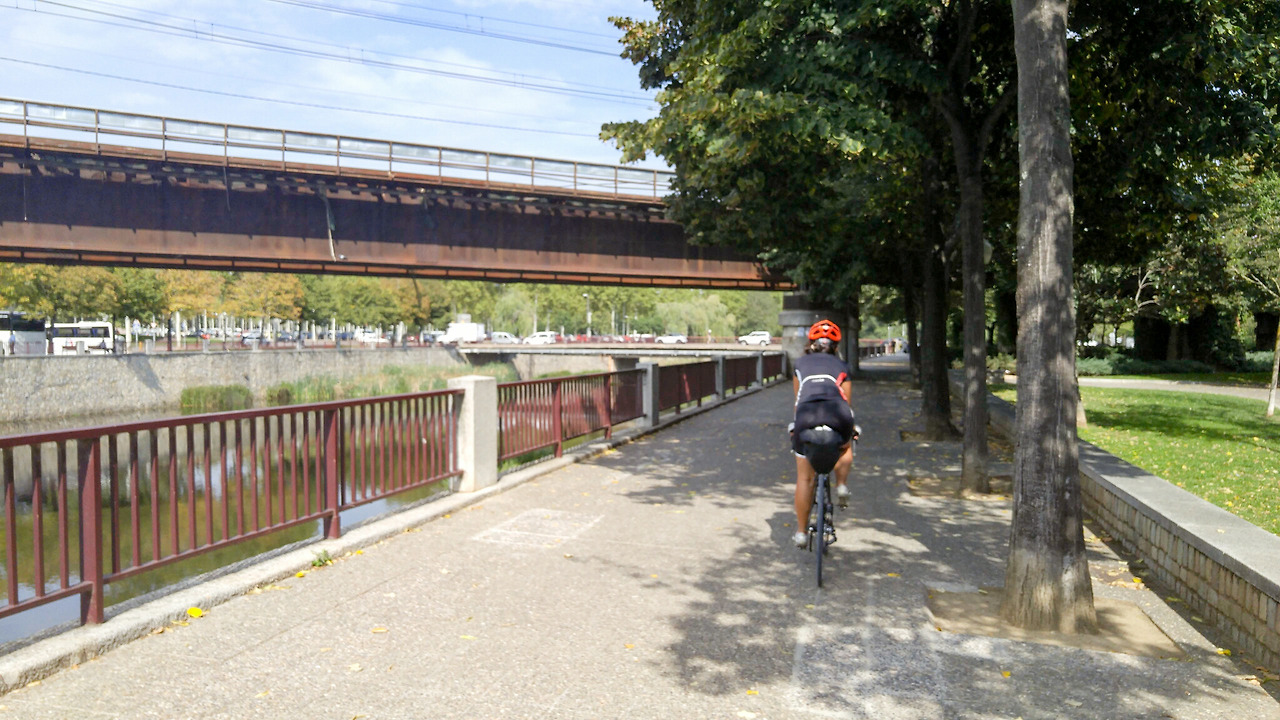앞에 달리는 할아버지는 아까 식당에서 만나서 잠시 얘기를 나누던, 불편한 다리로 자전거를 타고 여행하는 대단한 분이다. 벨기에 사람이라 그런지 우리 자전거가 자기네 나라 제품인지 알고 있었다. 안전을 위해 할아버지의 친구가 차를 타고 중간중간 기다리며 서포트해준다.