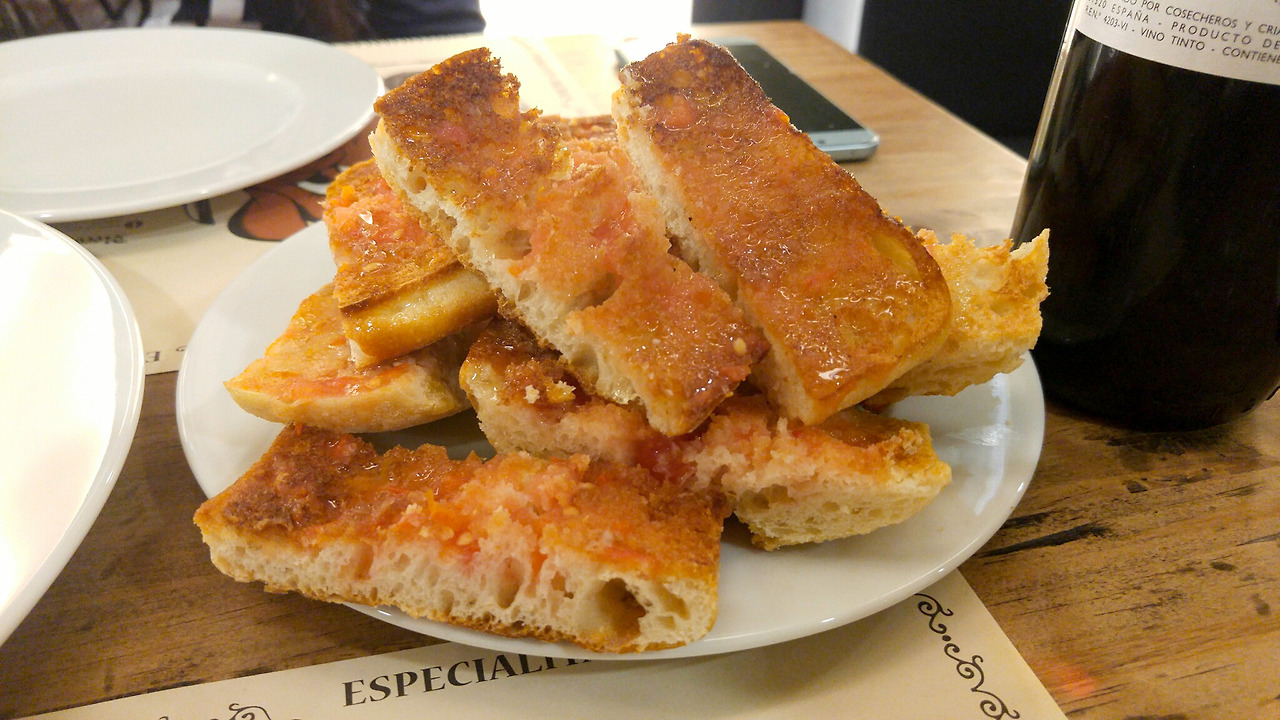 하몽과 함께 먹으면 맛있는 빵을 곁들여서 하몽 이베리코를 먹는다.