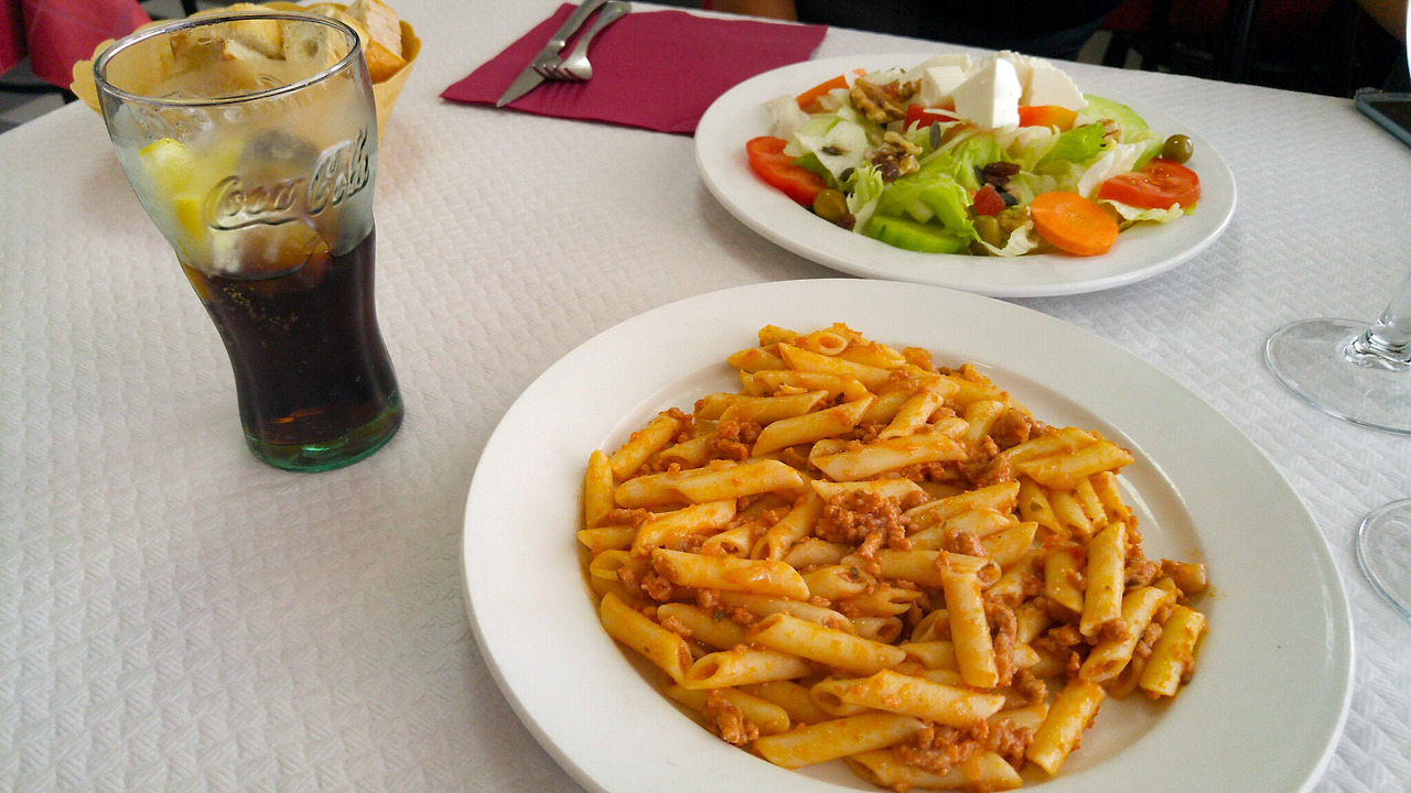 전채(Primer)로 지니님은 샐러드, 나는 펜네 파스타 알 라구를 주문했다.