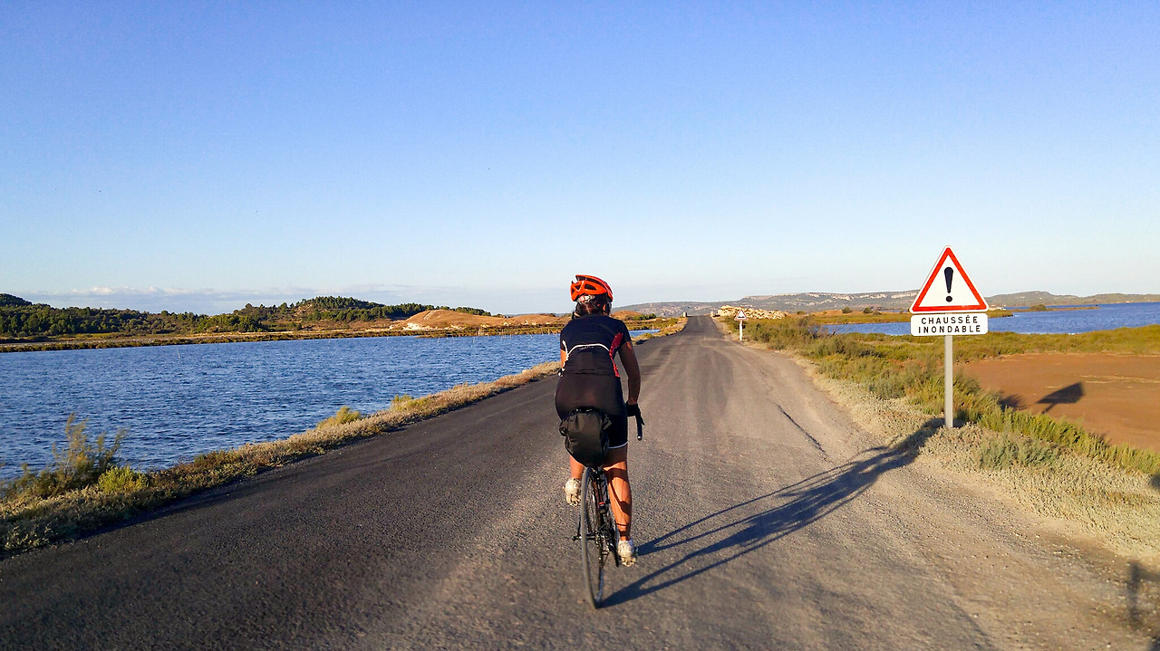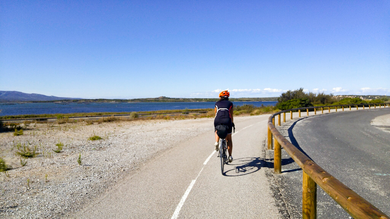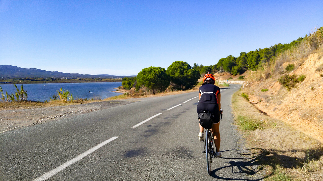 샛길은 어느새 D105라는 한적한 지방 도로와 합쳐지고 상뜨 폴 연못(Etang de la Saint-Paul)이 나타났다. 연못과 지중해 사이로 난 길을 달린다.