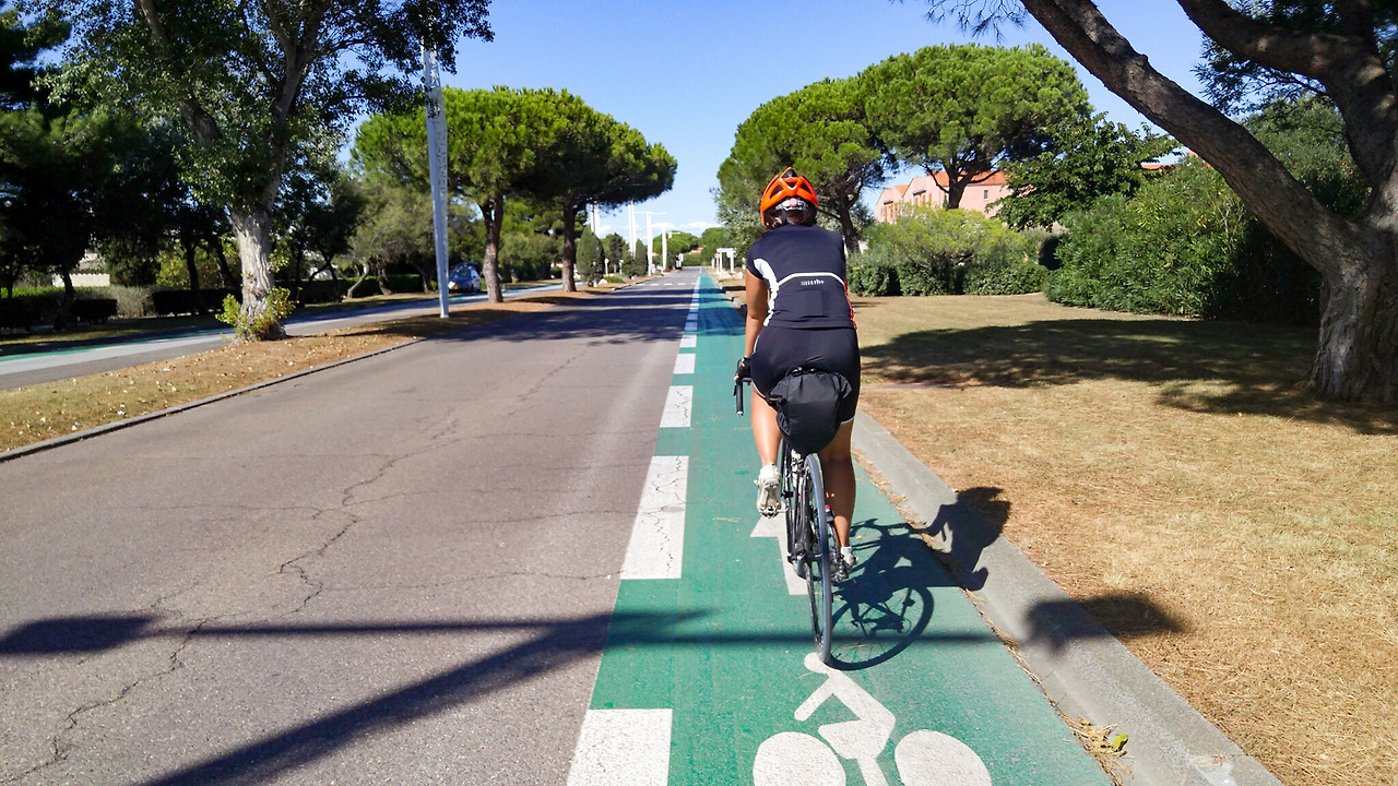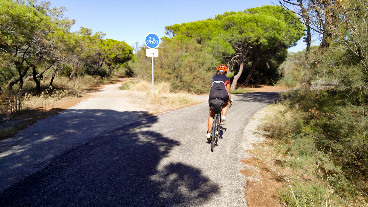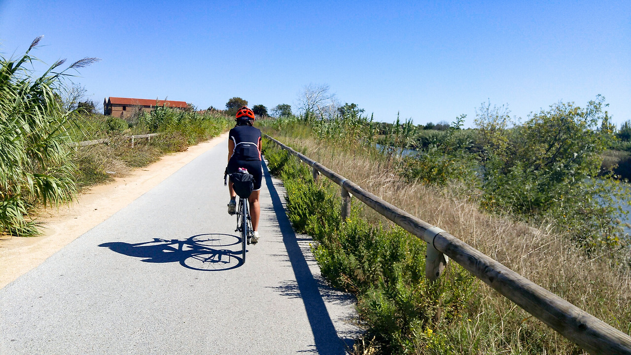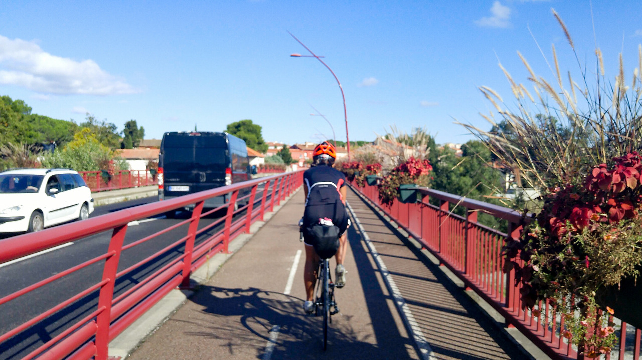 다리를 건너니 반가운 자전거길 표시가 보인다. 지중해 자전거 루트라 할 수 있는 유로벨로8(EV8) 자전거 도로의 일부 구간이다. 유로벨로8 구간은 우리나라처럼 매끈한 자전거길도 있지만 로드 바이크로는 달리기 힘든 비포장 구간도 많기 때문에 이를 완전히 따라가긴 힘들다.