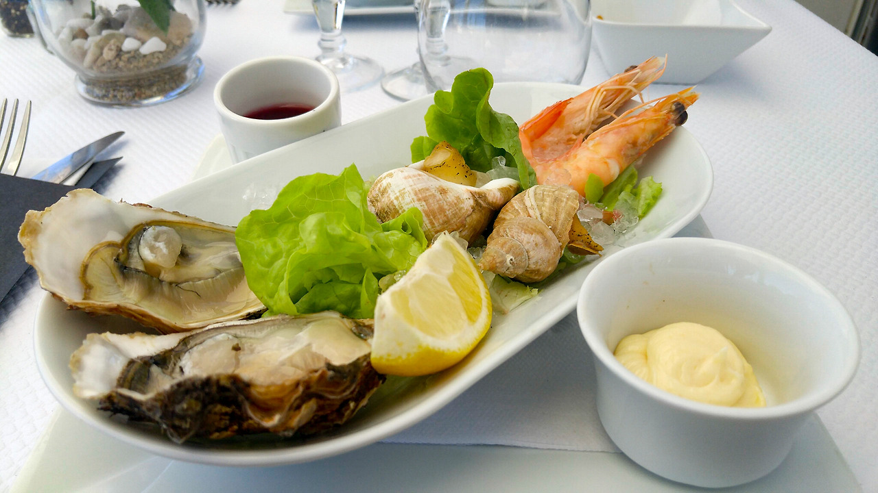 일단 전채로 해산물 세트를 주문했다. 지중해 쪽 사람들은 생굴을 그렇게 좋아해서 식사시간에 보면 얼음을 채운 커다란 그릇에 굴을 가지런히 담아 먹는다. 여기는 우리나라에서는 싸게 먹는 굴의 가격이 비싸고 굴을 그리 좋아하지도 않아서 우린 세트 메뉴에 포함되어 있는 것 정도만 먹는다.