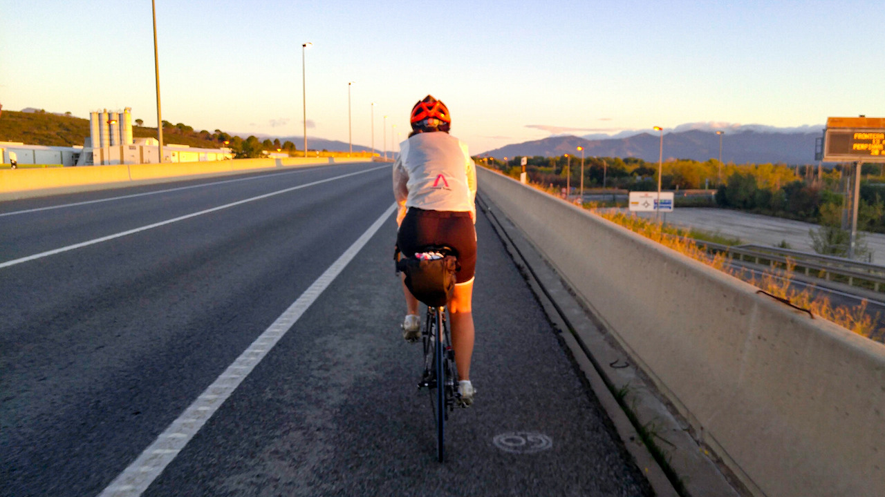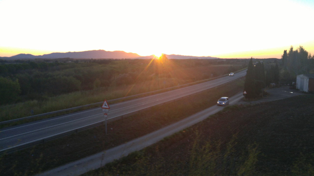 피게레스에서 빠져나와 N-II 도로를 달리고 있으니 동쪽 하늘에 해가 나오기 시작한다.