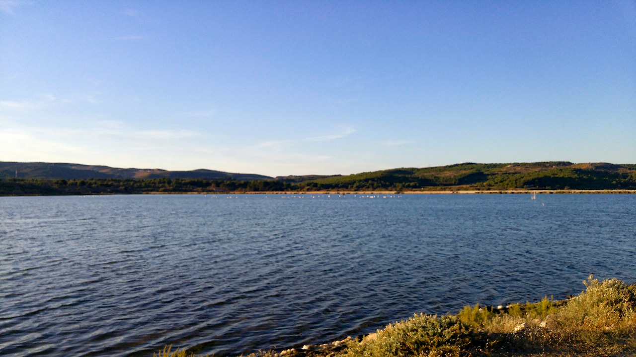 연못 저 멀리에 플라밍고(홍학) 무리가 있다. 프랑스 지중해 근처의 얕은 연못에는 저런 플라밍고들이 잔뜩 산다.