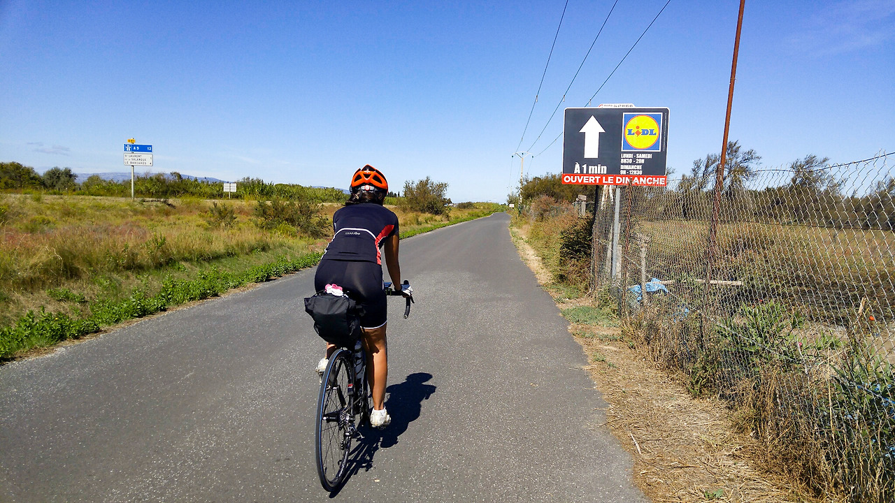 자전거길은 류카트(Leucate)라는 마을의 카르푸 앞까지 이어진다.
