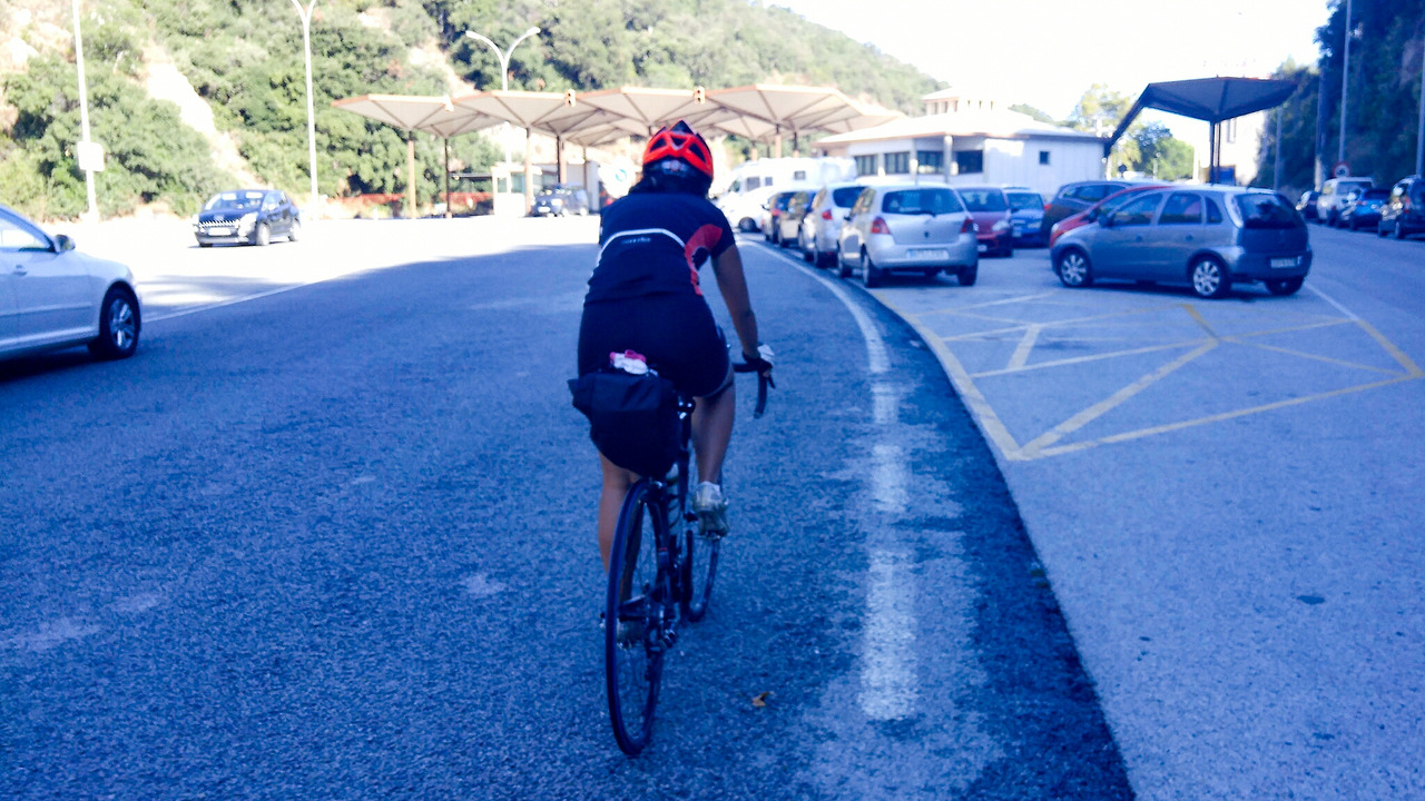 가는 길목에서 뭘 밟았는지 지니님 자전거에 갑자기 펑크가 난다. 가져온 여분 튜브로 교체하고 어제 헤로나에서 사놓은 CO2 카트리지를 써서 편하게 공기를 채운다. 로드 바이크의 레이싱 타이어는 120 psi 정도의 고압이기 때문에 작은 휴대용 펌프로 넣기는 너무 힘들다.