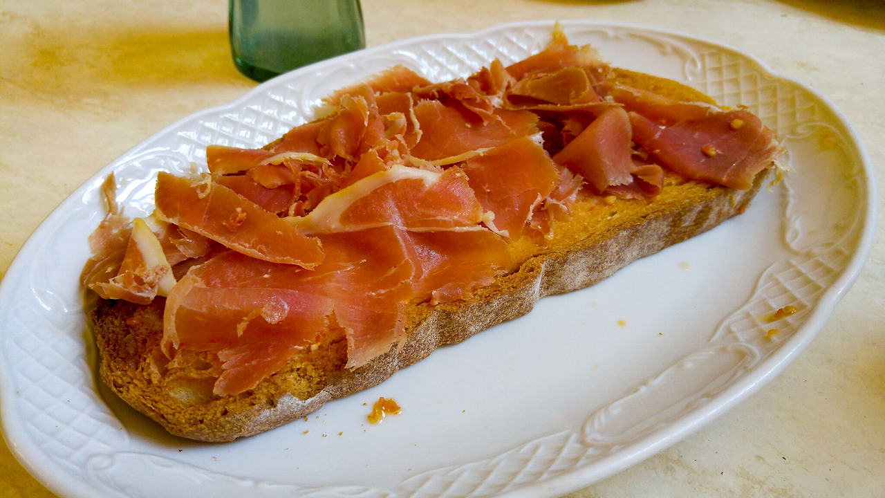 코르타도와 하몽 토스타다를 주문하니 큼지막한 빵 위에 하몽이 충분히 얹어져서 나왔다.
