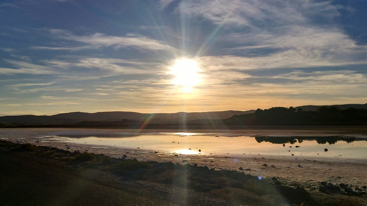 북쪽의 막힌 연못은 연못 물이 거의 증발해서 소금밭이 되었다. 햇빛에 반짝이는 흰 소금밭이 눈 쌓인 듯하다. 원래 경로대로 갔으면 못 보았을 풍경이다.