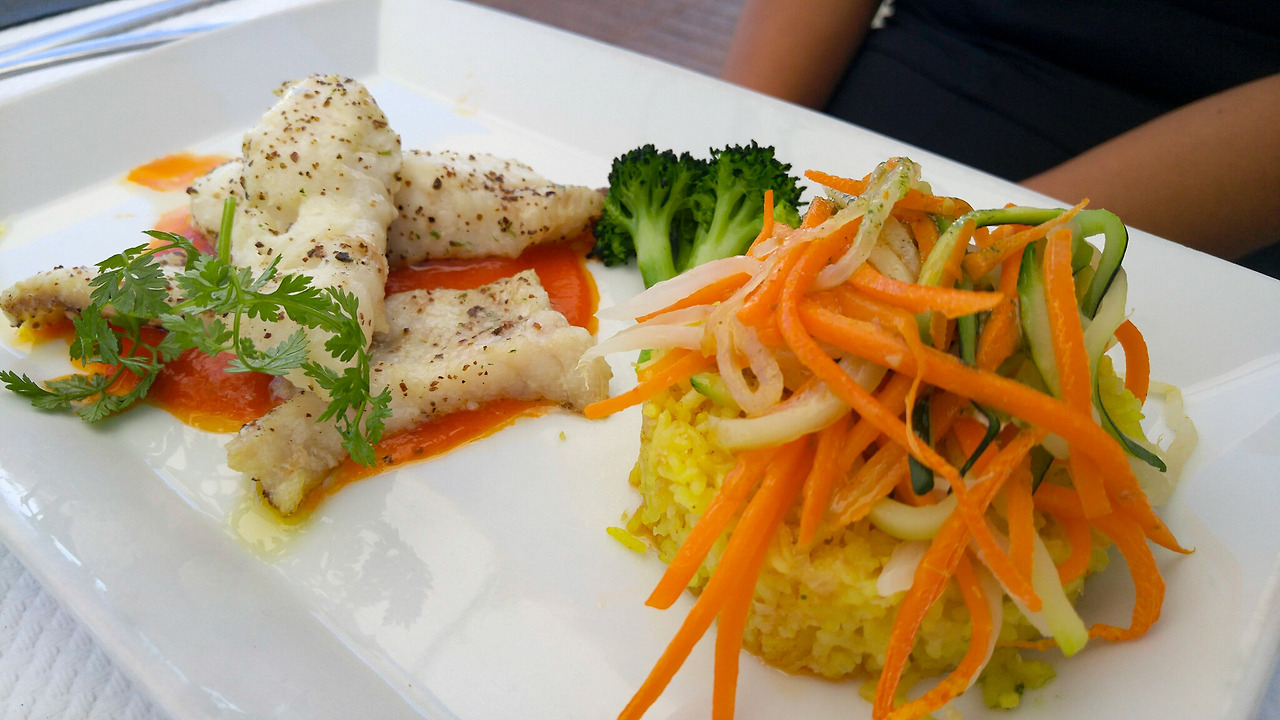 그리고 메인 요리인 소고기는 내 것, 생선은 지니님 것이다. Onglet이라는 부위인데 지방과 잡부위가 거의 없는 살코기가 맛있다.