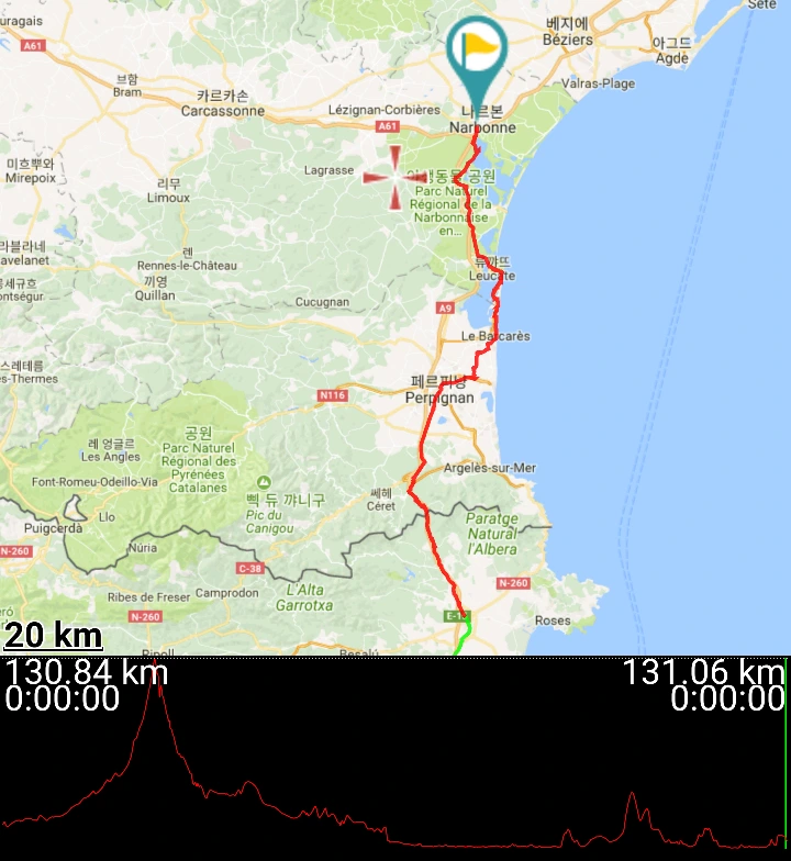 이동 경로 및 거리 : 피게레스(Figueres)-나르본(Narbonne) 131 km