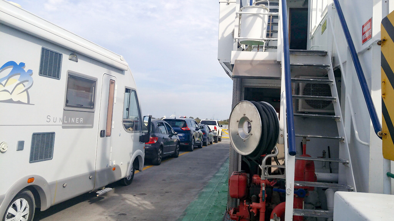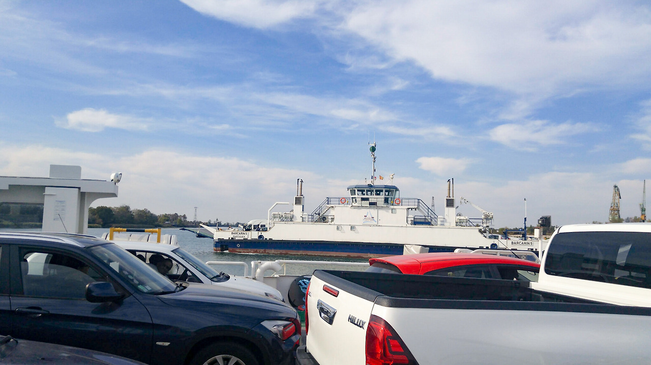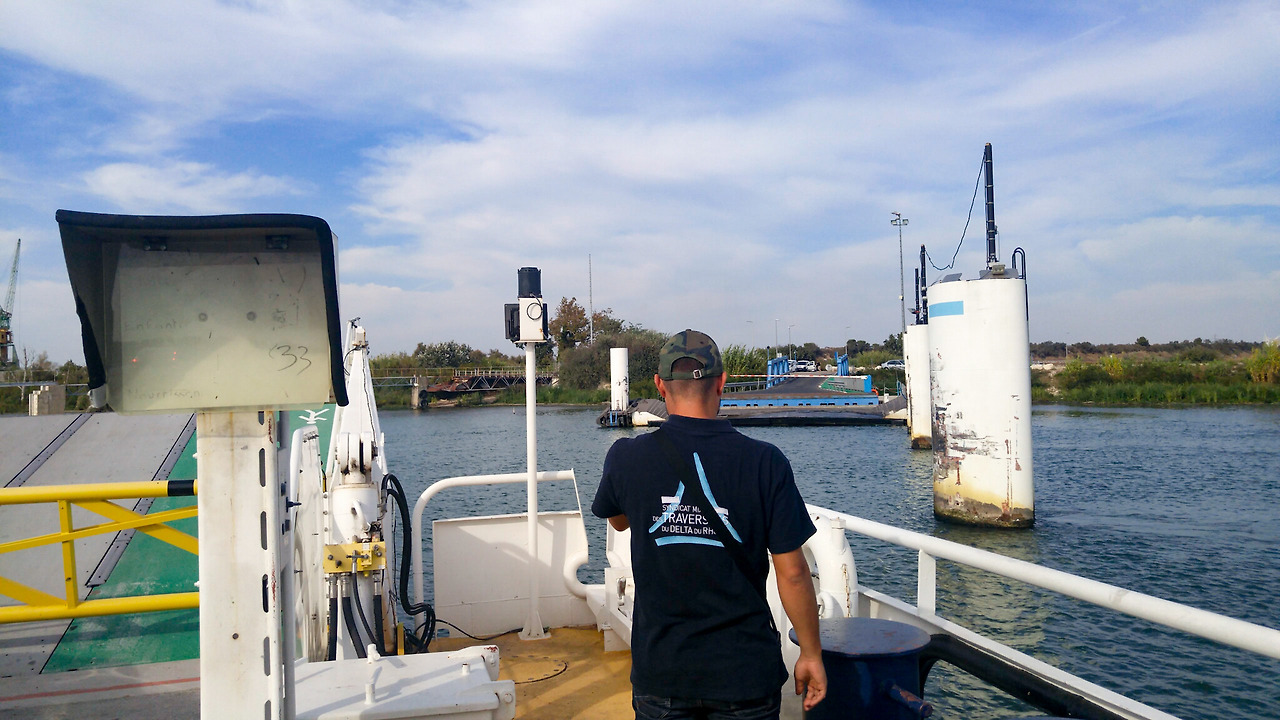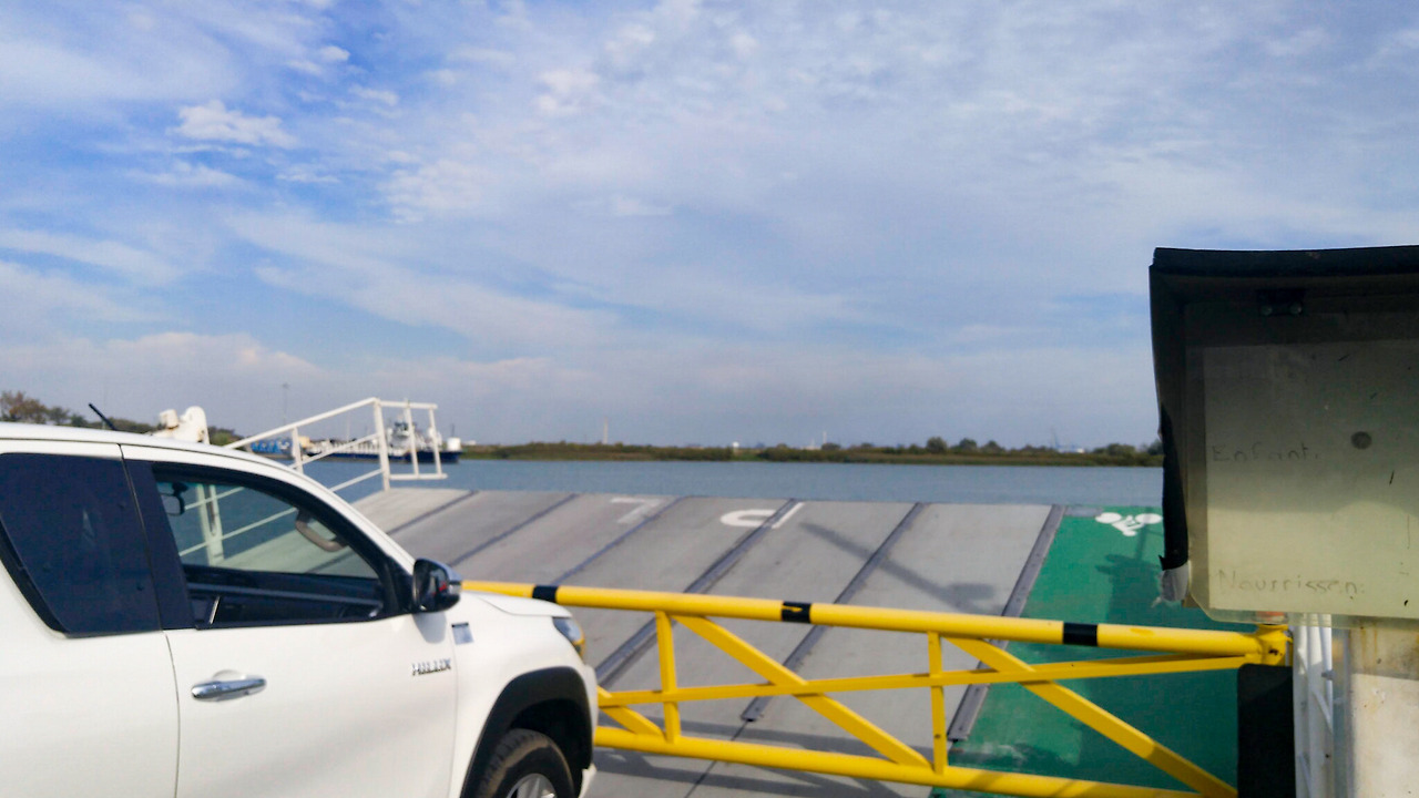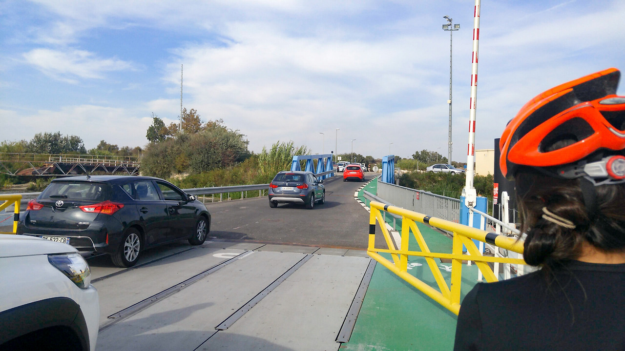 이것이 바로 Bac de Bacarin이다. 다리가 없는 대신 두 대의 네모난 바지선 같은 배들이 번갈아가면서 자동차와 사람을 강 건너편으로 옮겨준다. 사람과 자전거는 무료이고 자동차들은 통행료를 내야 한다.