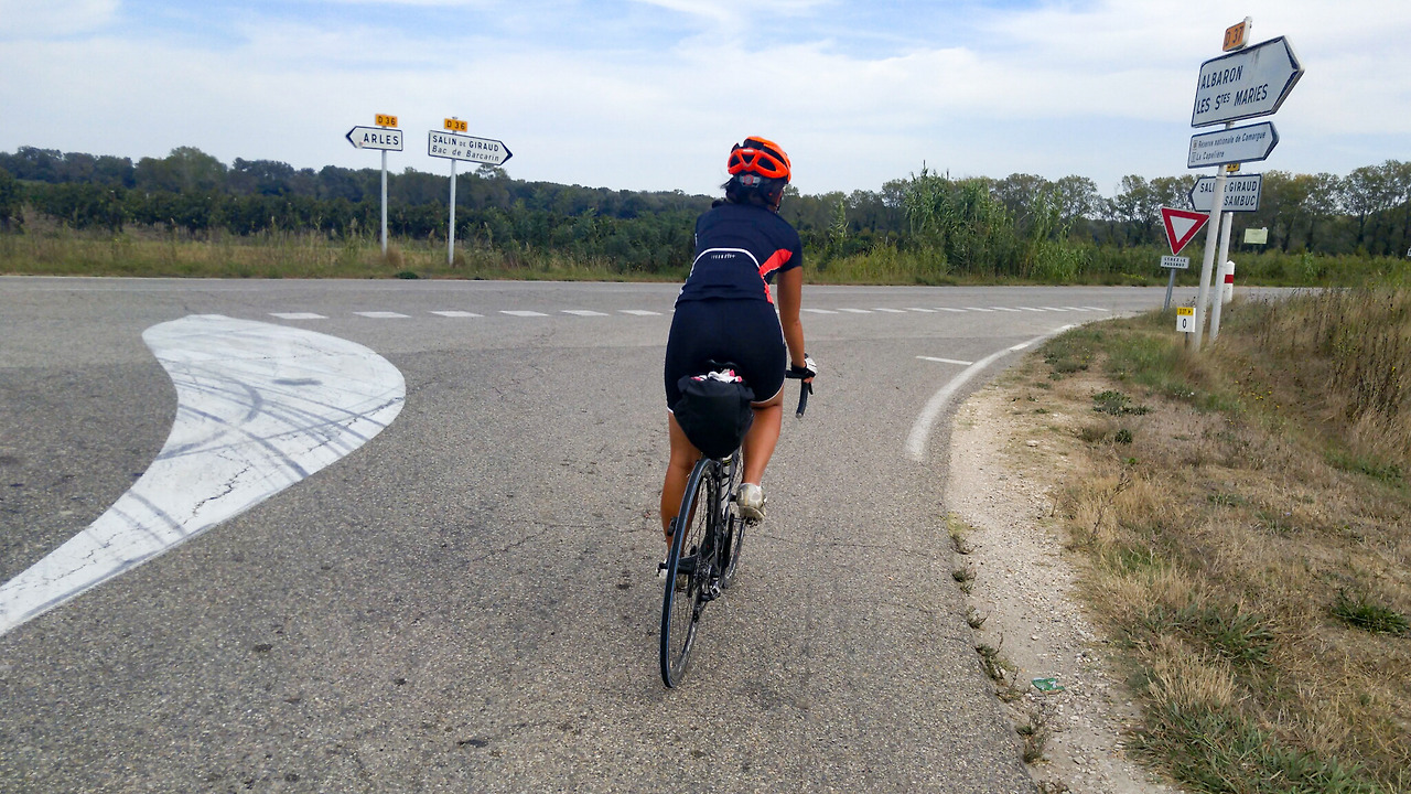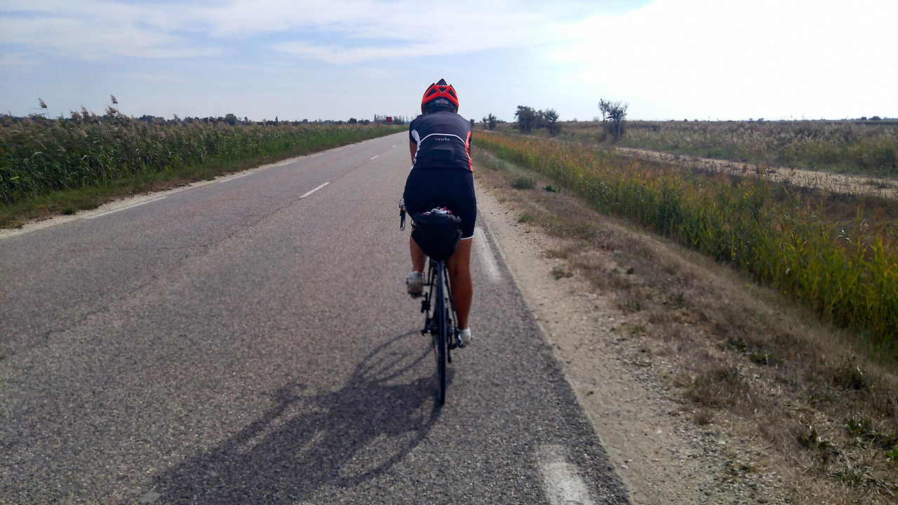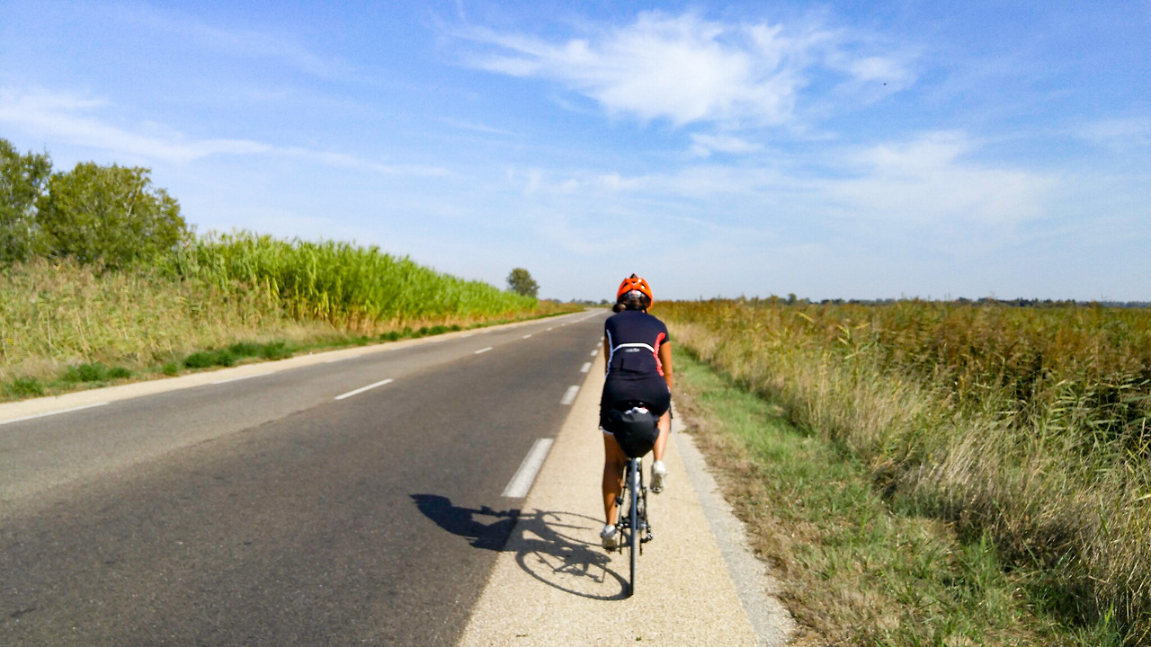 넓은 벌판과 파란 하늘을 보면서 달린다. 벌판과 하늘 외에 다른 건 거의 없다. 그냥 광활한 허허벌판이다. 설마 카마르그가 끝날 때까지 이런 풍경만 나오는 것은 아니겠지?
