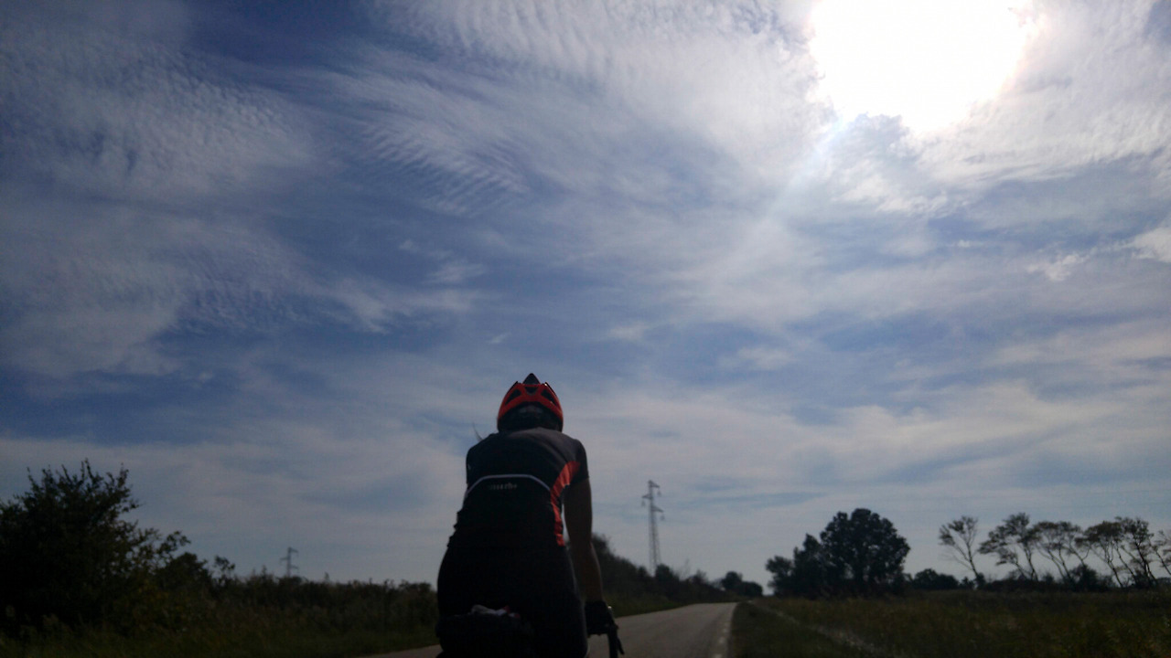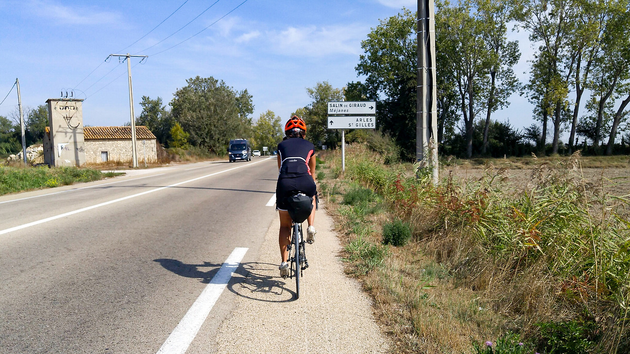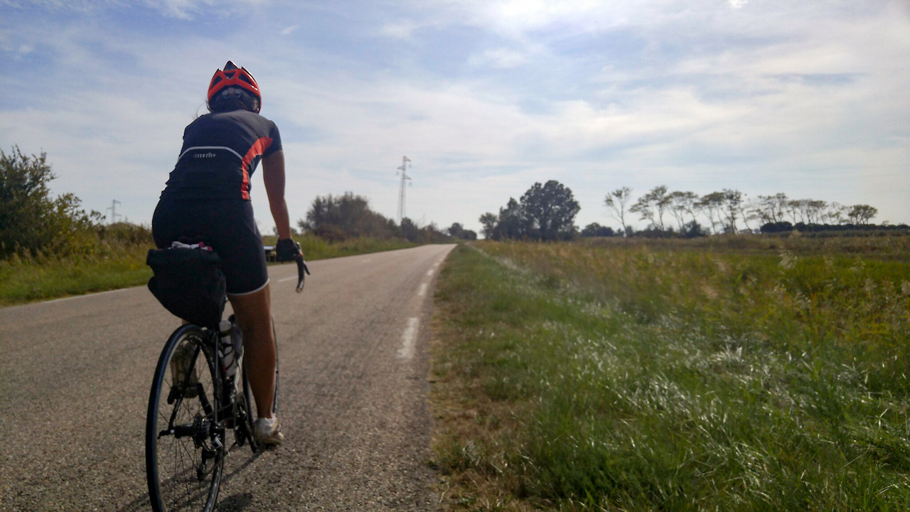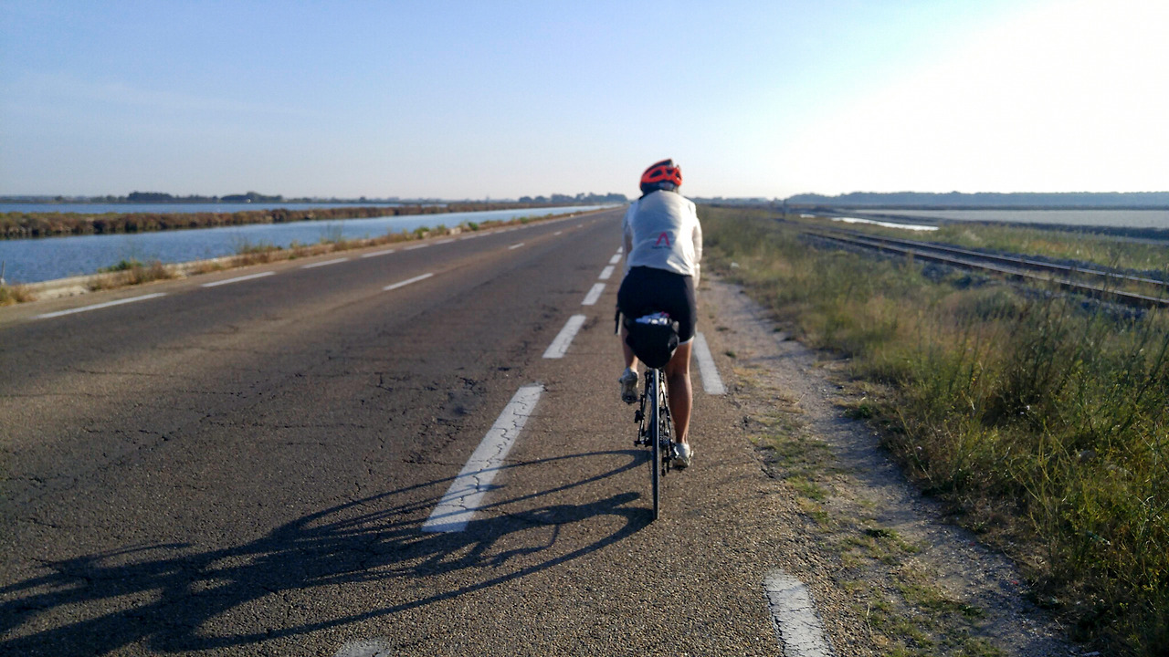 넓은 벌판과 파란 하늘을 보면서 달린다. 벌판과 하늘 외에 다른 건 거의 없다. 그냥 광활한 허허벌판이다. 설마 카마르그가 끝날 때까지 이런 풍경만 나오는 것은 아니겠지?