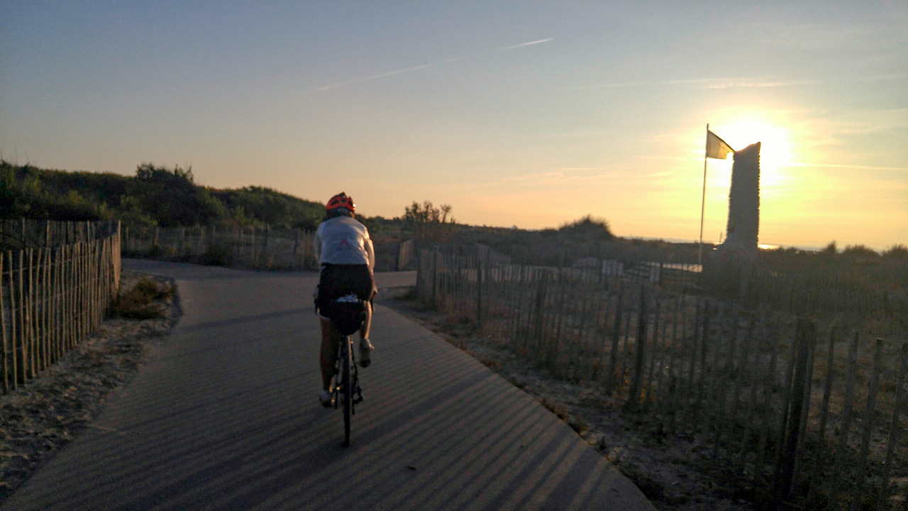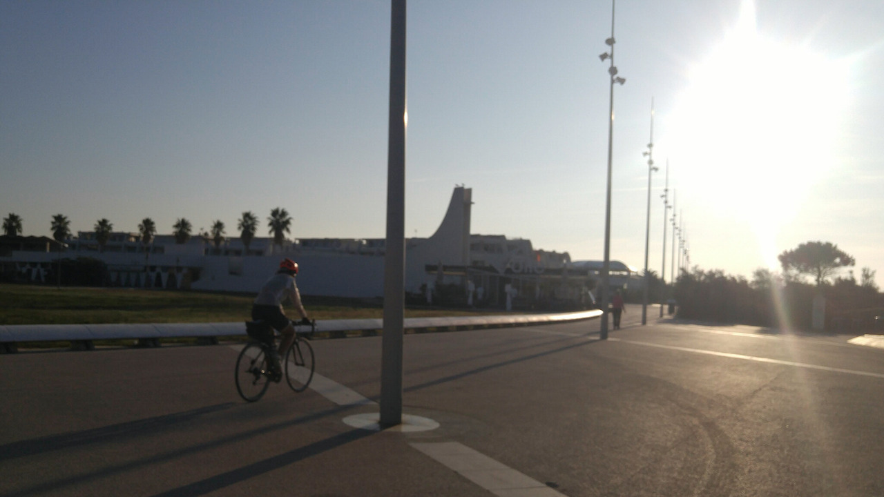 쌀쌀한데 다행히 해가 금방 떠오른다. 해안길을 따라서 계속 자전거길이 있으니 다행이다.