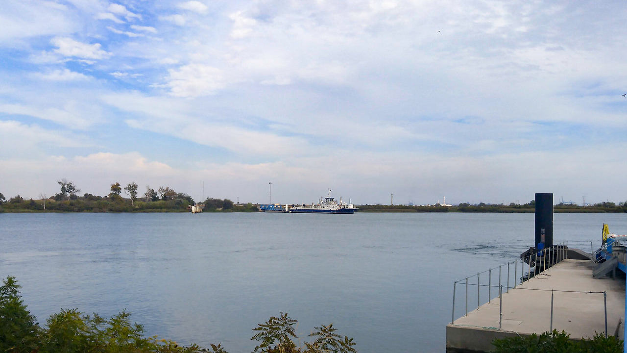 반대편에서 출발한 바카린 5호 배와 엇갈려서 지나간다. 앞뒤로 대칭인 특이한 배다.