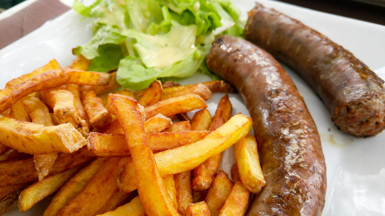 나는 수제 물소 소시지(Saucisses de taureau)... 진짜 집에서 만든 느낌으로 고기순대에 가까운 소시지이다. 짜고 후추향이 강하다.