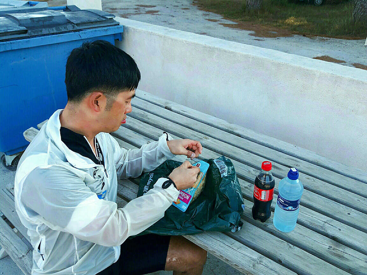 아침을 안 먹었으니 과일 가게 근처 벤치에서 아까 마트에서 사놨던 음료수와 샌드위치를 꺼내서 간단히 요기만 한다.