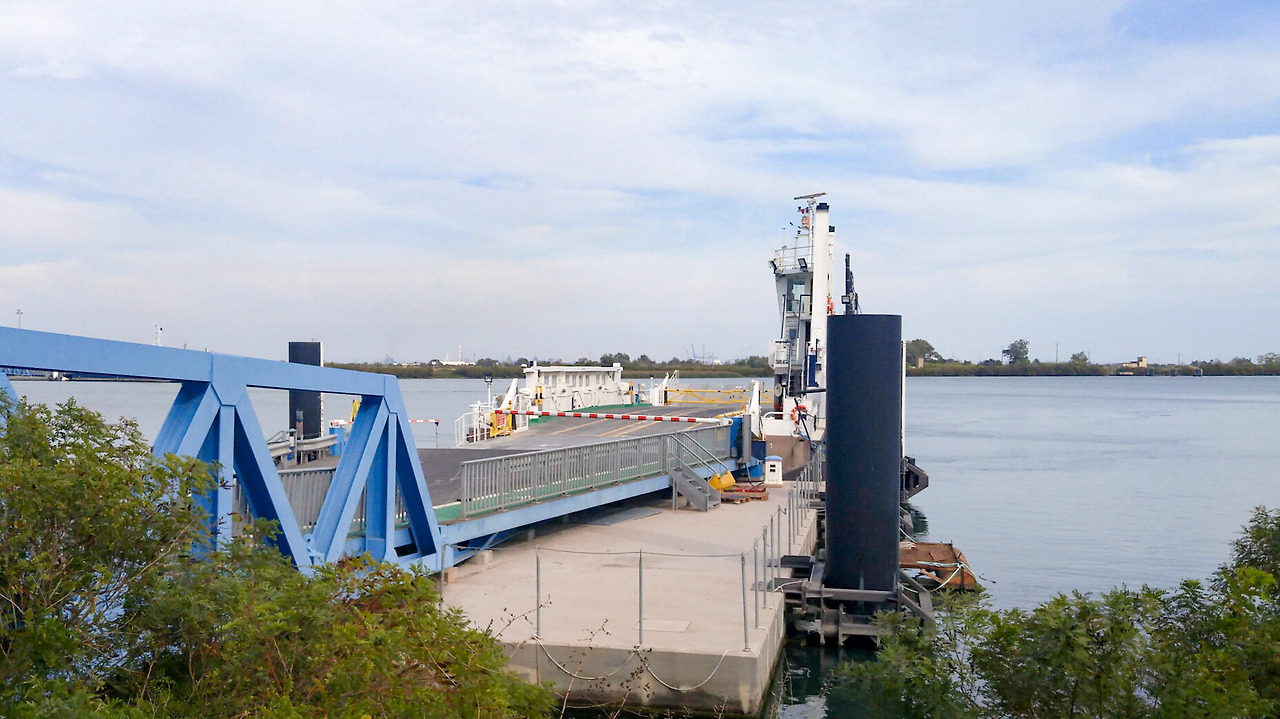 출입구가 양쪽으로 있어 방향 전환을 할 필요 없는 네모 모양의 커다란 나룻배이다.