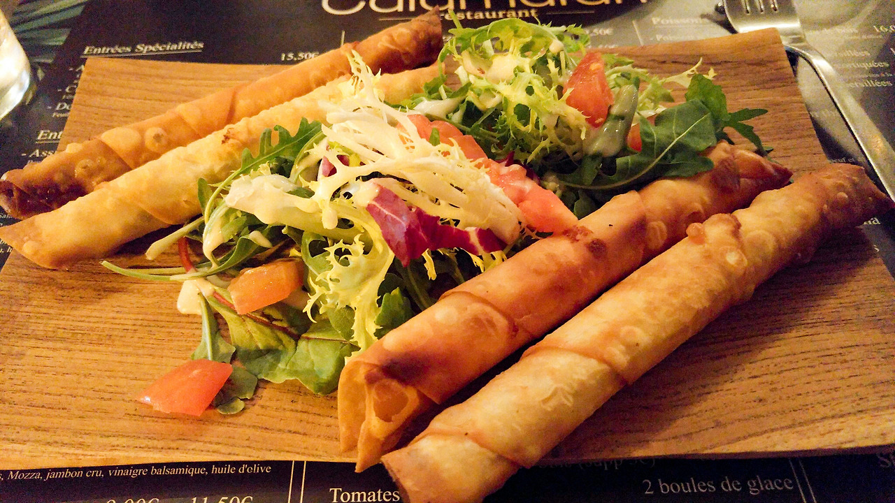 샐러드에도 춘권 튀김 같은 것이 나오고...