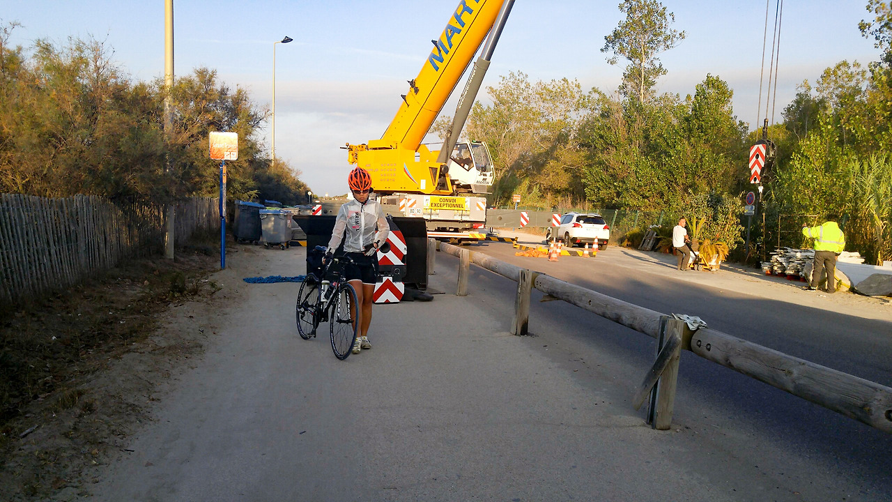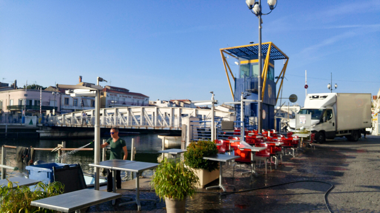 리조트를 벗어나 다리를 건너서 르 그로 드 와(Le Grau-du-Roi)라는 마을을 지난다. 프랑스식 발음은 영어 철자를 자기들 방식대로 꼬아서 부르는데 프랑스어는 전혀 모르니 참 읽기 어렵다.