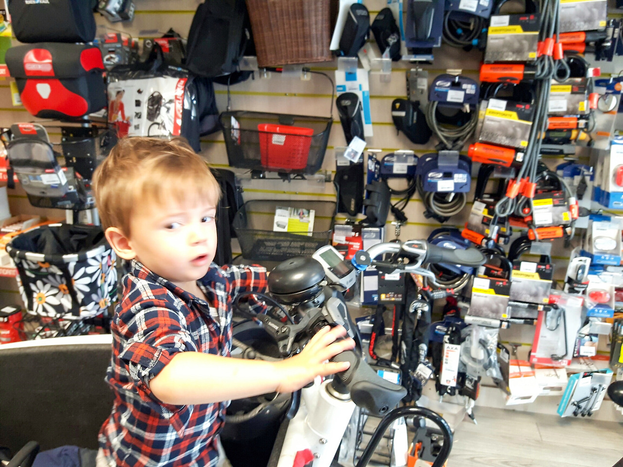 자전거 가게 주인이 아들과 함께 자전거 산책 나가려던 참이었나 보다. 자기 일을 마치고 다른 사람에게 맡겨놓고 아이를 데리고 나간다.