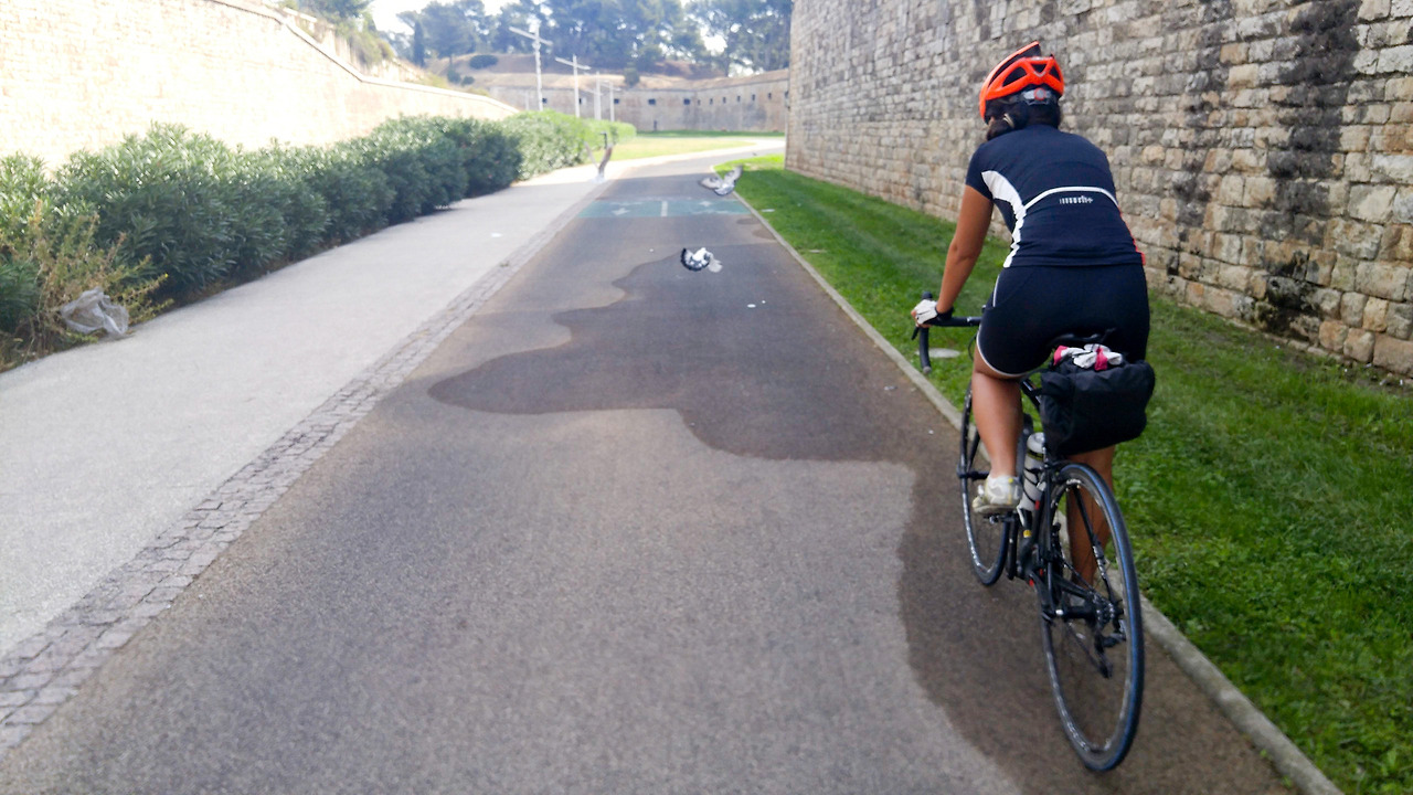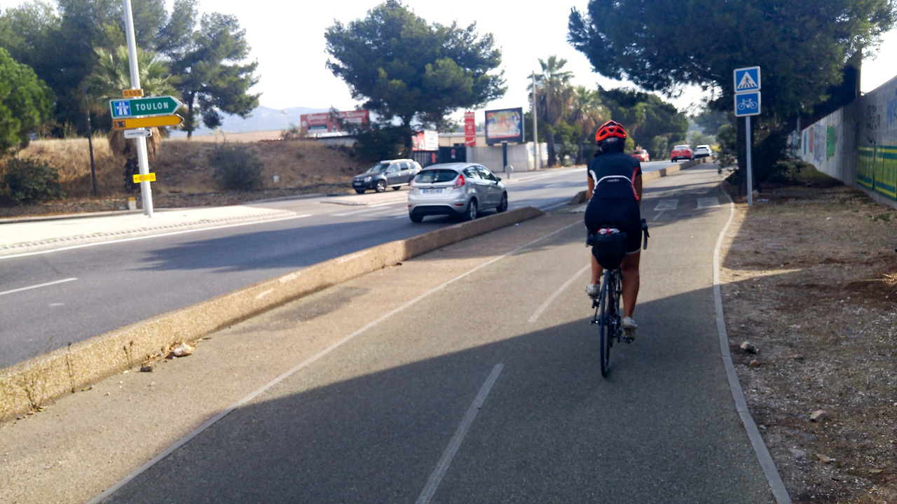 막힌 길을 나오자마자 꽤 넓어 보이는 자전거길이 보인다. 자전거길을 따라서 툴롱(Toulon)을 향해 달린다.