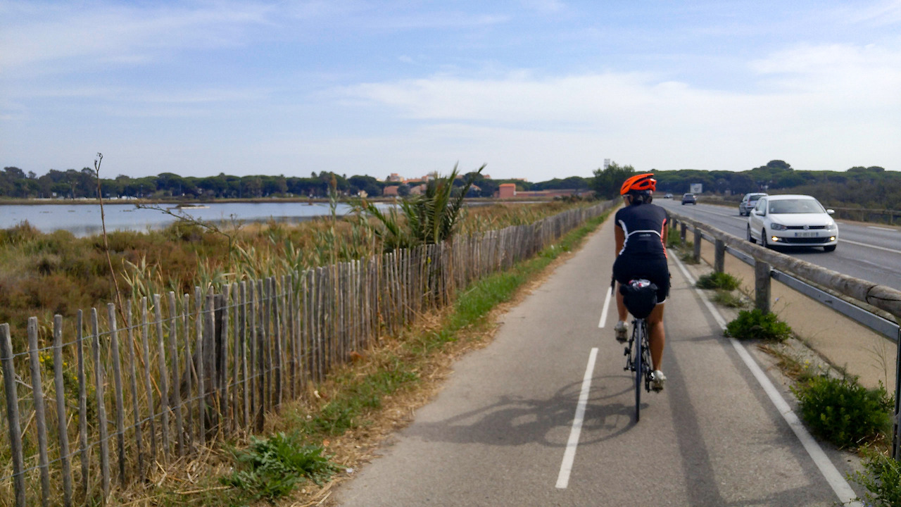 이제 튜브도 챙겼으니 든든하다. 툴롱 외곽에서 시작된 자전거길은 예르(Hyeres) 변두리까지 길게 이어진다. 해변에서 벗어난 내륙 자전거길이라 바다가 보이지는 않지만 숲 속으로 난 자전거길은 운치 있으면서 편하게 달리기 좋았다.