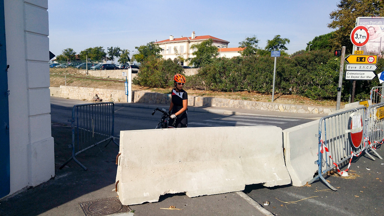 D63번 도로를 따라서 식스 포 레 플라주 시내를 지나가는데 막힌 길이 있다. 눈 앞의 철교만 넘어가면 되니 돌아나가기는 싫다. 완전히 막아놓지는 않고 사람이 통과할 틈은 있기에 들어가 본다.