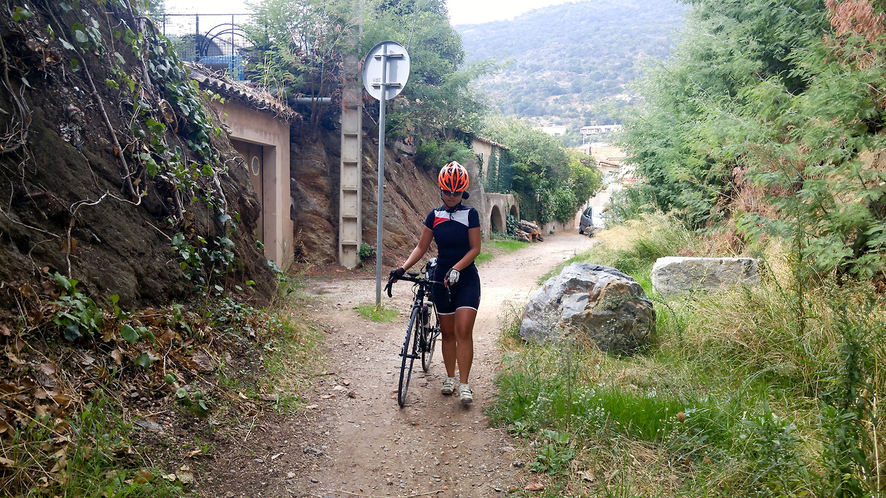 자전거길은 이렇게 막다른 곳에서 비포장길로 바뀌어버렸다. 조금만 끌고 가면 다시 자전거길이 이어질 듯해서 슬슬 걸어간다.