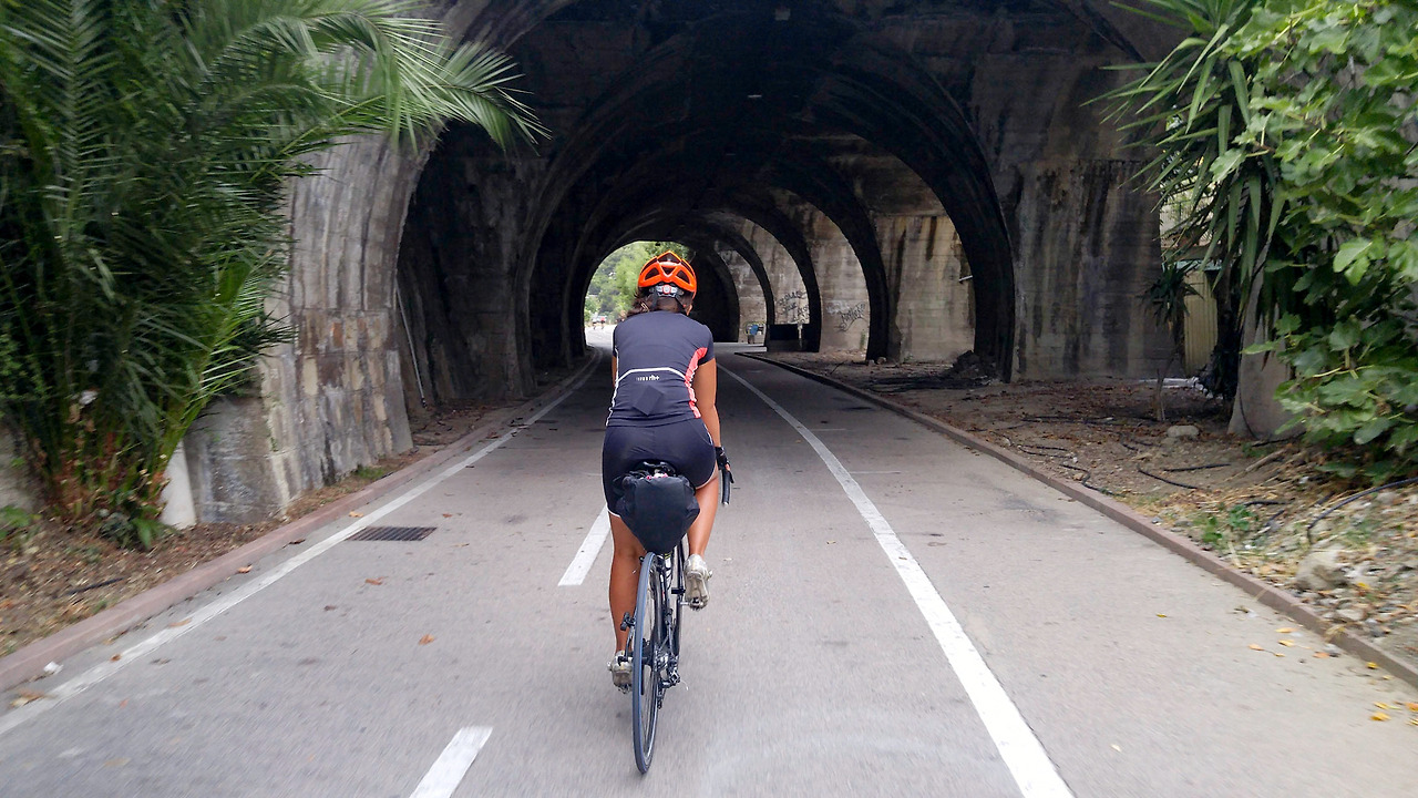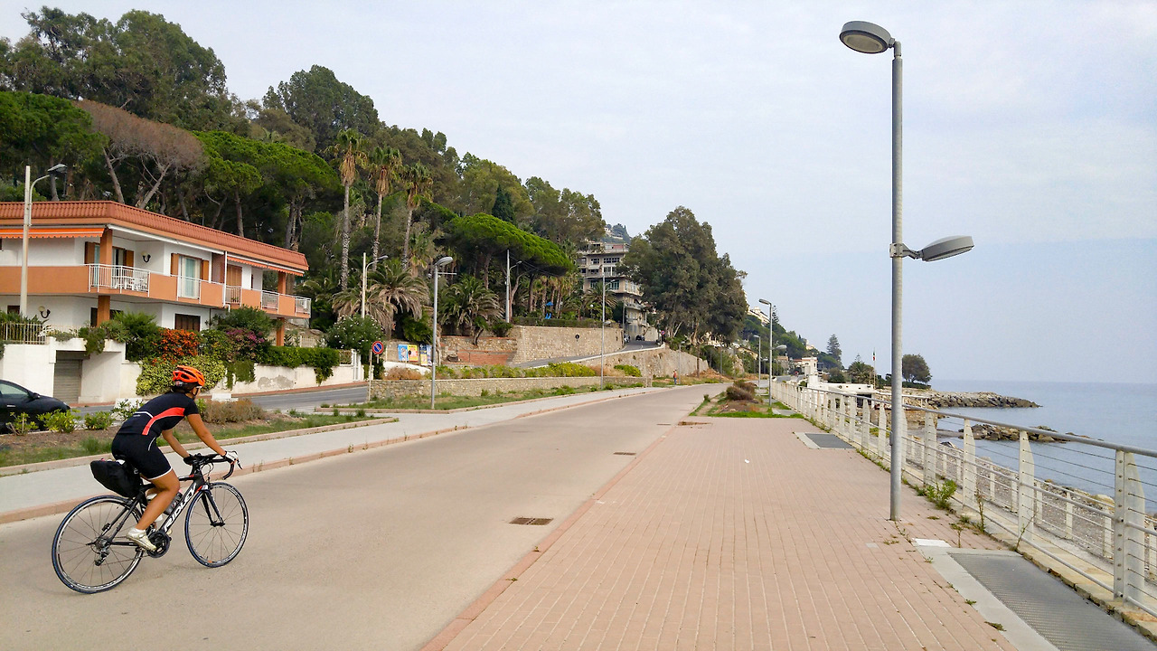 고속도로같은 자전거길은 산 레모를 지나서도 계속 이어진다. 해변을 달리고 터널도 지난다.