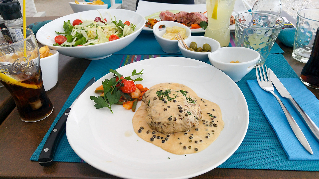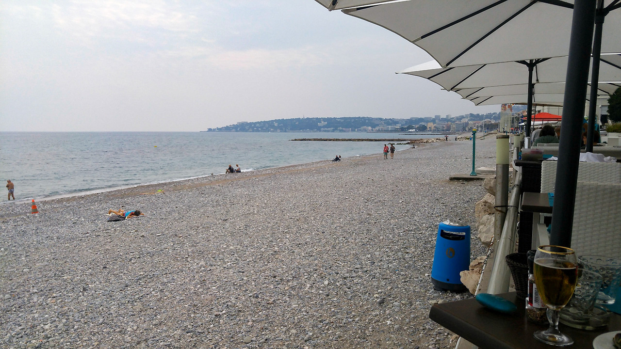 해변의 적당한 식당 테라스에 앉는다. 이탈리아 국경에 가까워서 그런지 식당 직원들도 친절하고 유들유들한 것 같다.