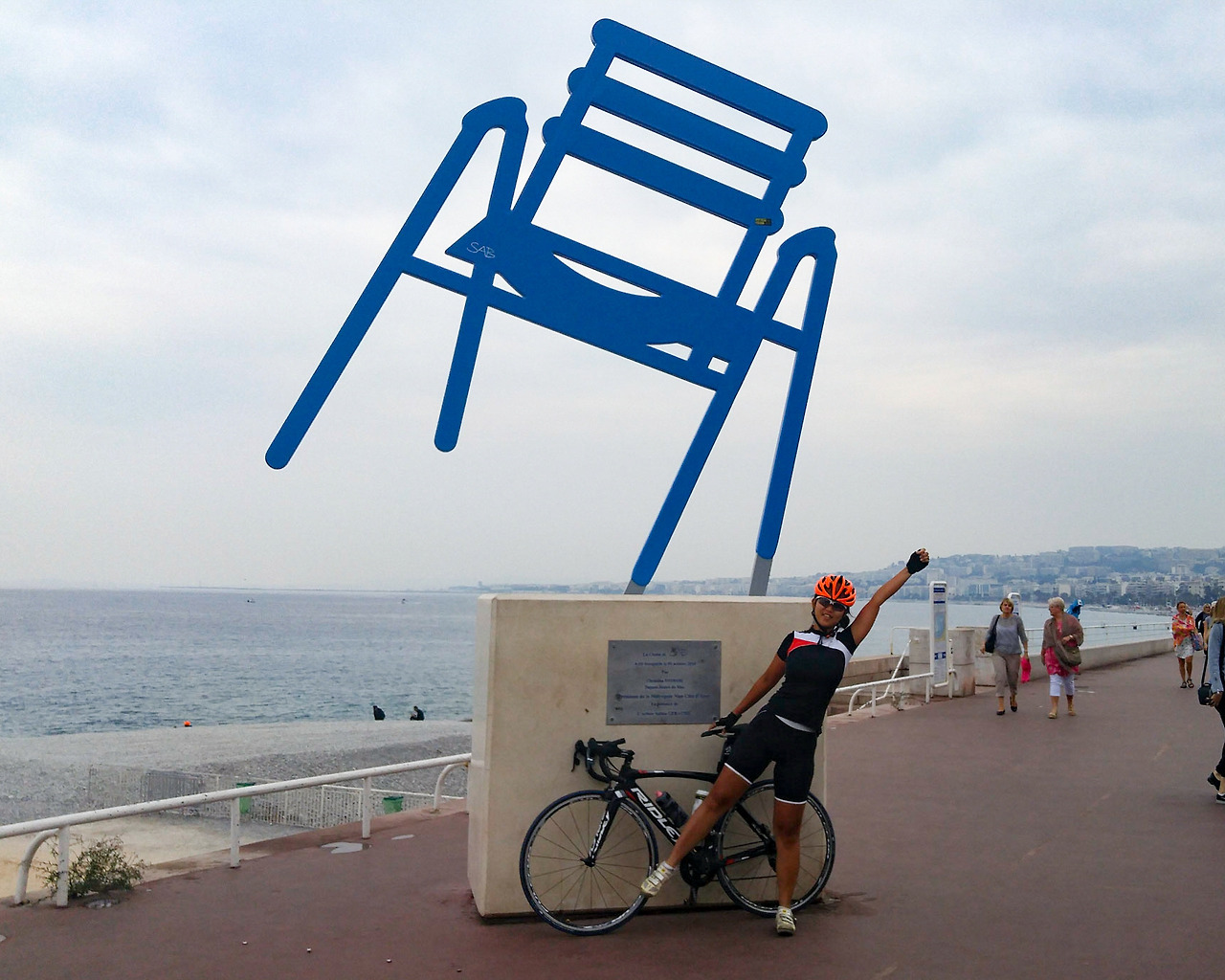파란의자가 놓인 "라 프롱"으로 돌아가서 파란 의자들과 함께 사진을 찍는다. 니스 공항부터 여기 파란 의자 해변까지 이어지는 긴 산책길을 라 프롱- 영국인 산책길(La Promenade des Angleis)- 이라 한다. 200년 전 영국사람들이 아이디어와 자금을 지원하여 추운 겨울을 피해 니스로 몰려든 부랑자들에게 일자리를 주려고 만든 산책로라고 한다.