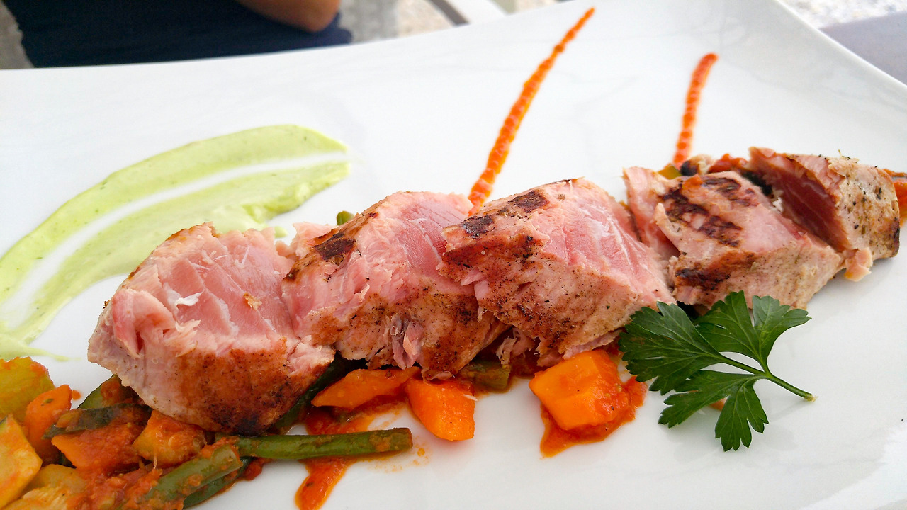 샐러드 하나와 각자 먹을 메인 요리를 주문한다. 나는 당연히 고기, 지니님은 참치 스테이크다.
