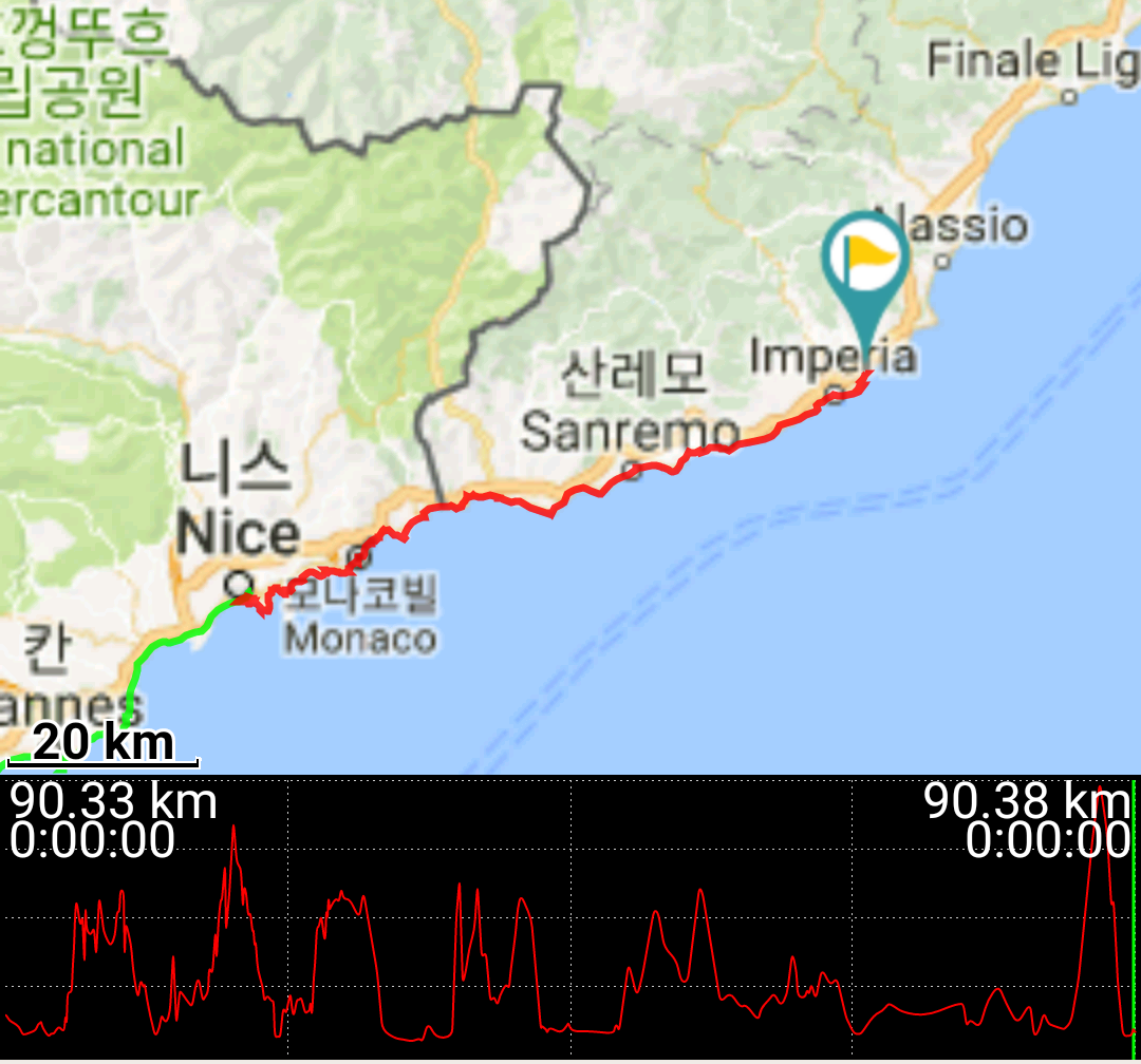 이동 경로 및 거리 : 니스(Nice) - 모나코(Monaco) - 디아노 마리나(Diano marina) 90 km