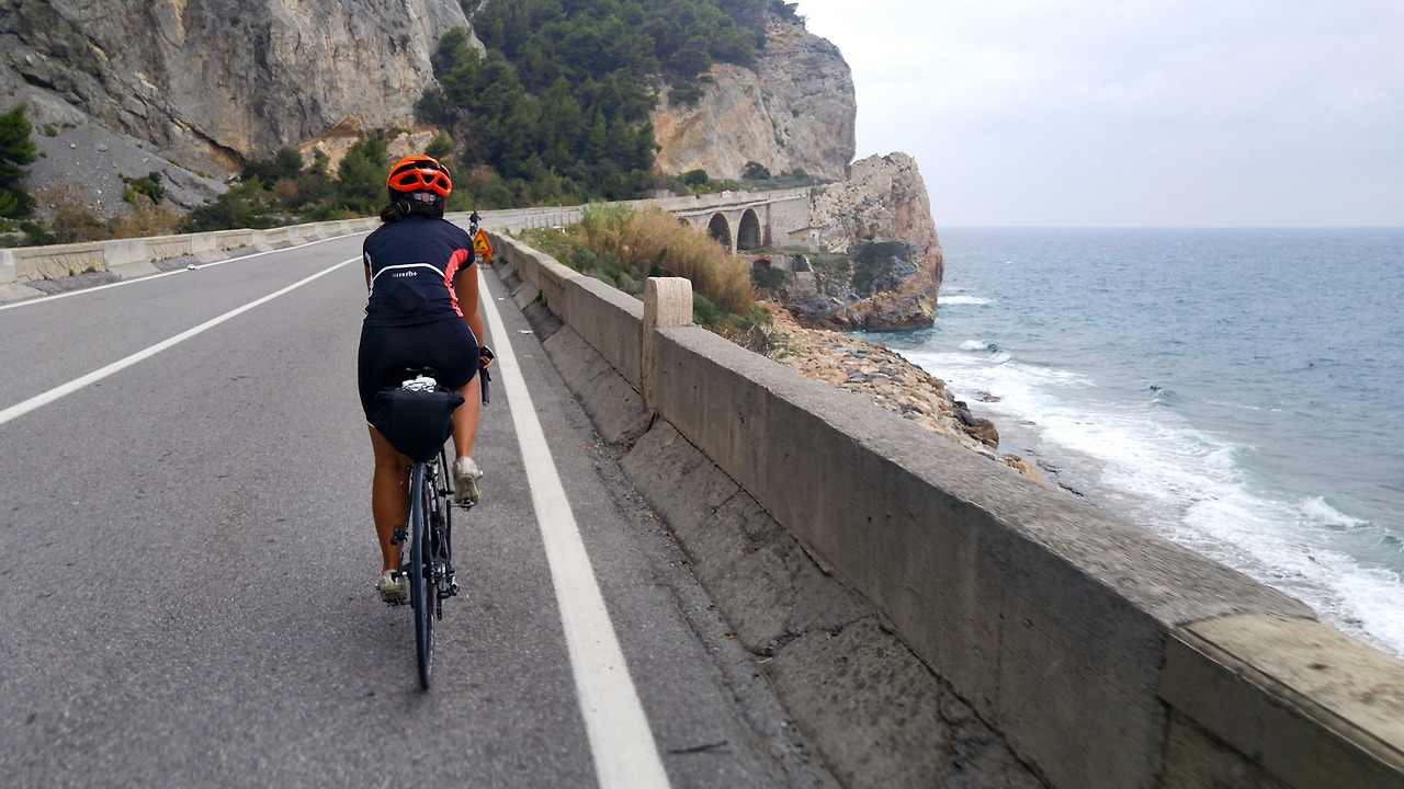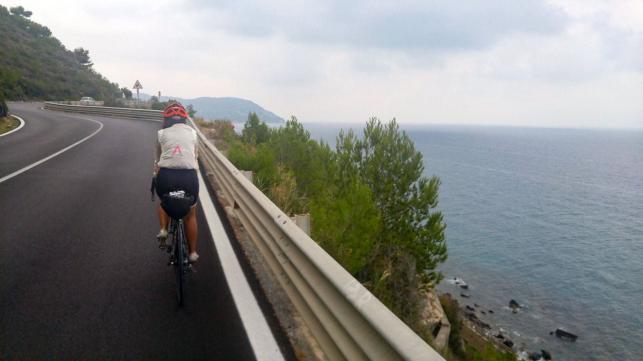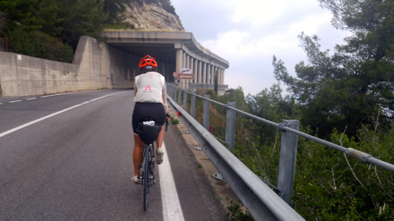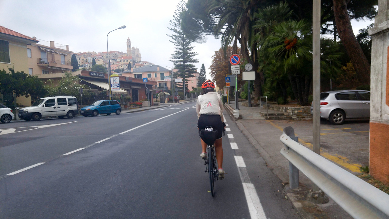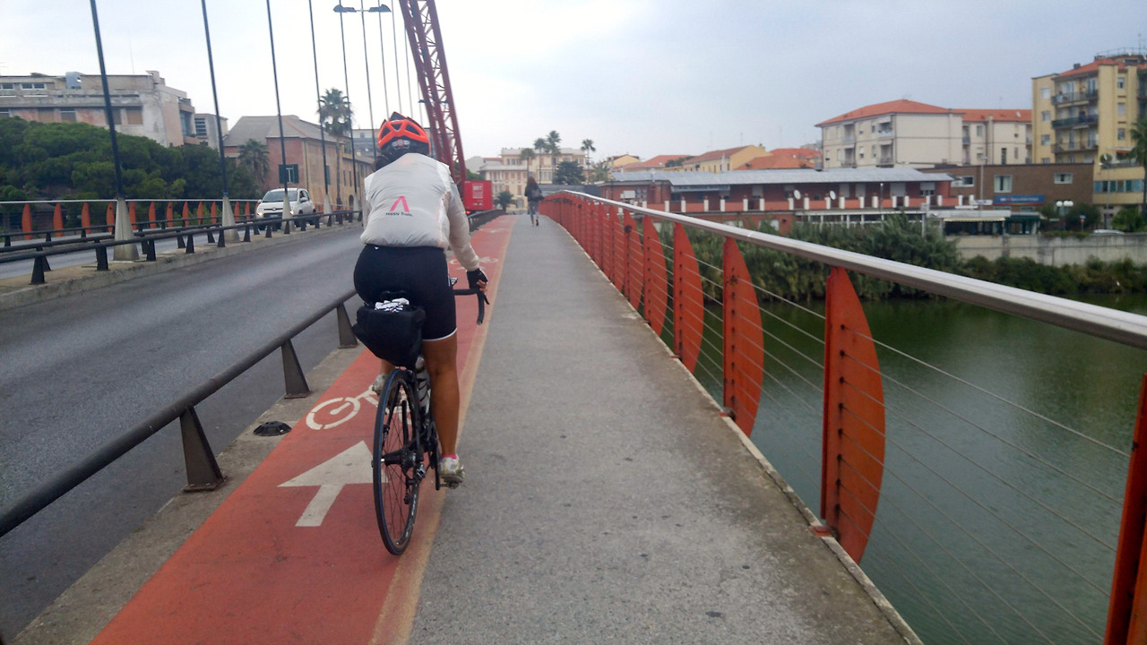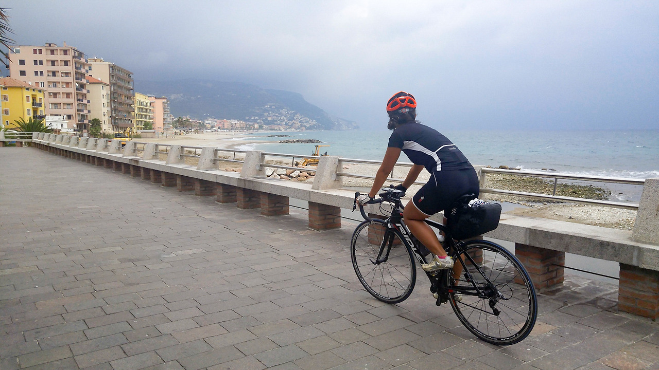 최대한 해변으로 달리려니 기찻길을 피할 수가 없다. 건널목에서 기찻길을 건너야 하는데 계속 기차가 지나가는 때에 걸려서 잠시 멈춘다. 이탈리아는 기차가 지나가는 전후로 넉넉하게 시간을 두고 차단봉을 내려버리기 때문에 한 번 걸리면 꽤 오래 기다려야 한다. 차단봉이 내려오면 얼른 뛰어서 건너버리는 사람들도 있다.